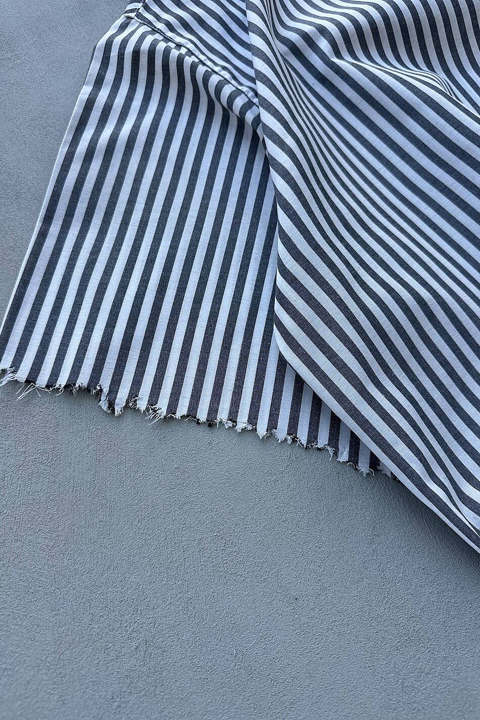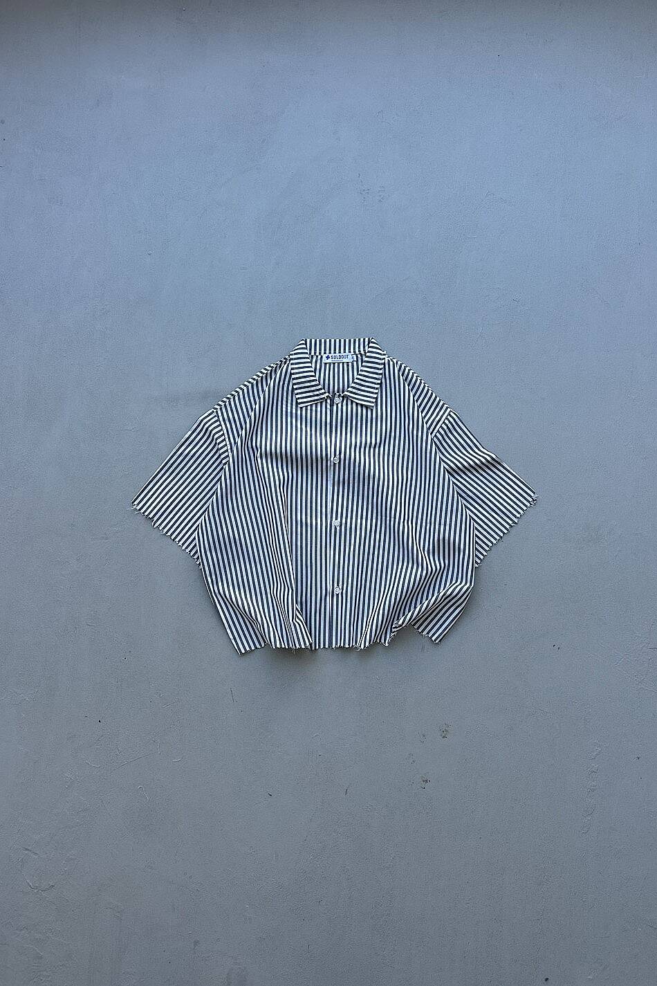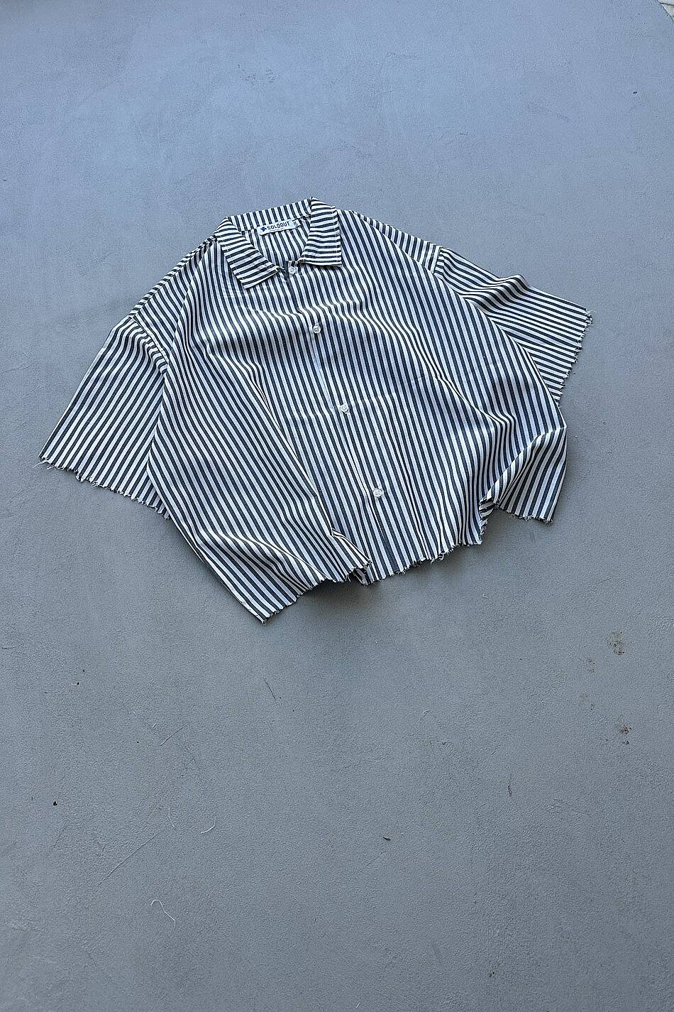Antrasit Çizgili Distressed Yarım Kol Boxy Fit Gömlek