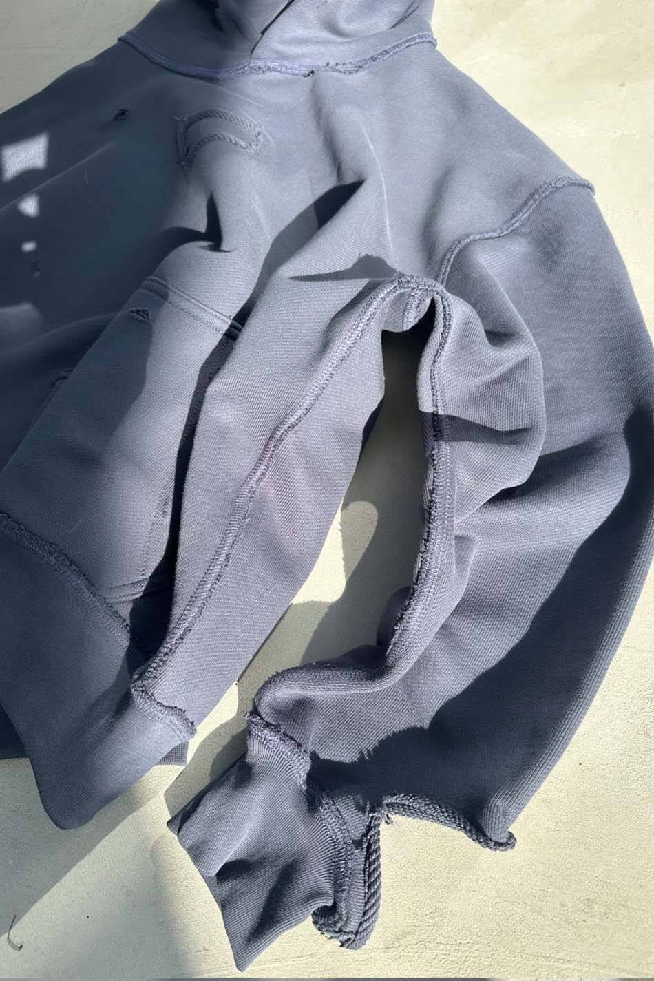 Antrasit Distressed Oversize Boxy Fit Hoodie. Oeko Tex sertifikalı%100 pamuklu, 450gsm ağırlığında,şardonsuz, diagonel kumaştan üretilmiştir. Kanguru cepli, göğüs kısmında dikdörtgen dikiş detaylı, düşük omuzlu. Distressed yapısıyla ve ters dikiş detaylarıyla özgün bir görünüm kazandırılmıştır.Tamamen el işçiliği ile yıpratma işlemi uygulanmıştır.
