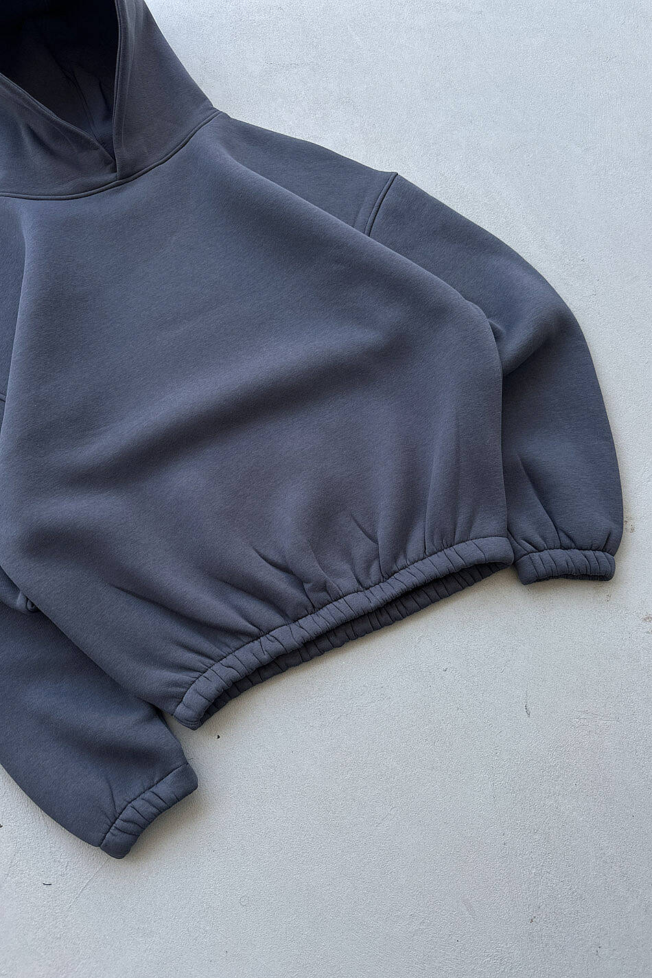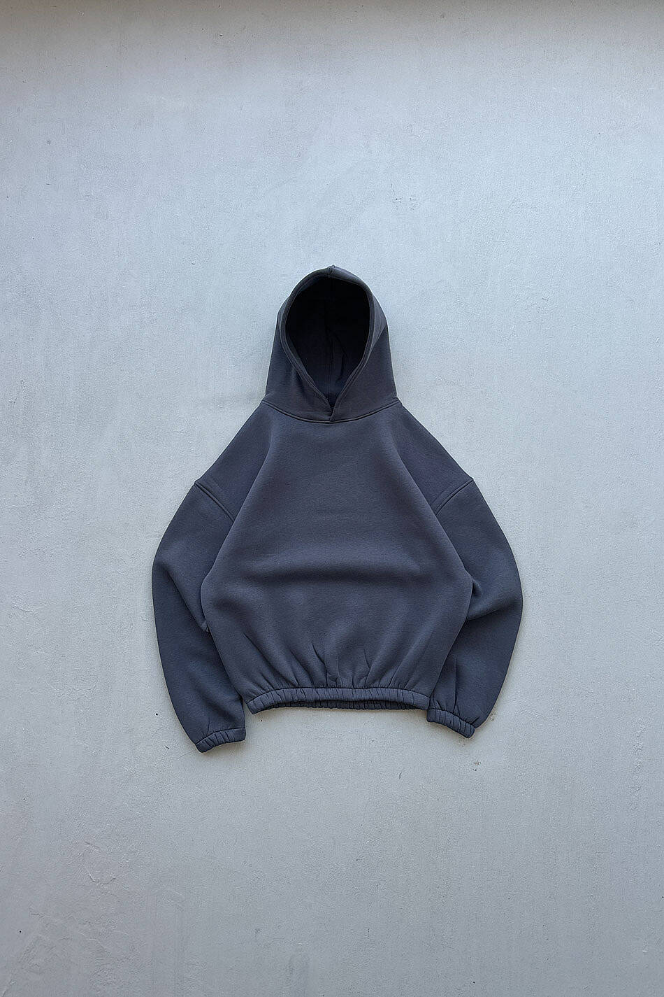 Pamuk karışımlı Oeko Tex sertifikalı kumaştan üretilmiş ve içi yumuşak tüylü orta kalınlıkta oversize boxy fit kapüşonlu sweatshirt. Kapüşonu astarlı, düşük omuzlu, uzun kollu, kanguru cepli, manşetleri ve etek ucu lastikli ribanalı.