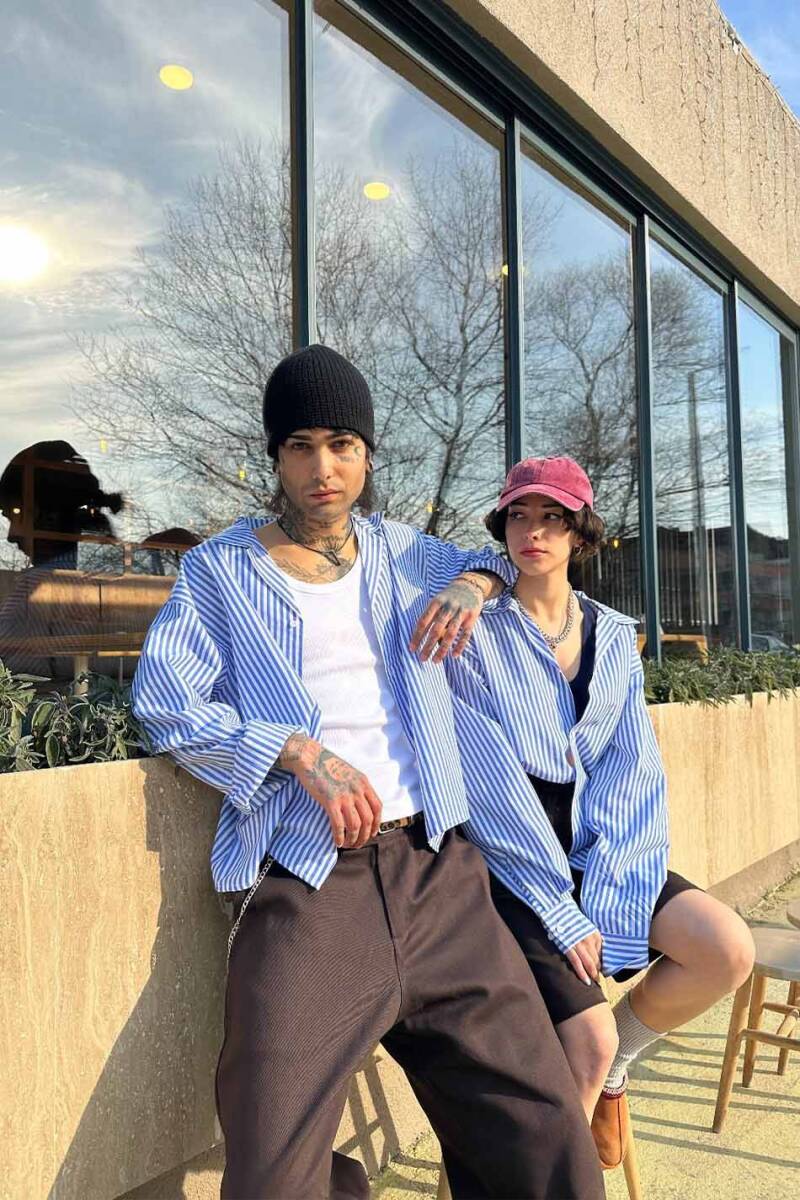 Pamuklu kumaştan üretilmiş, dikey çizgili crop gömlek. Düğmeli manşetleri ve önden tam düğme kapamalı tasarımıyla klasik bir silüete sahiptir. Etek ucu düz olup, bol kesimi sayesinde rahat bir kullanım sunar.