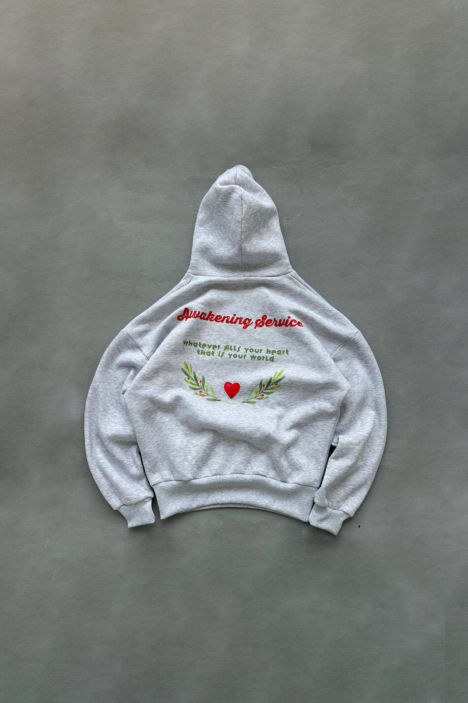 Pamuk karışımlı Oeko Tex sertifikalı kumaştan üretilmiş ve içi yumuşak tüylü orta kalınlıkta gri melanj oversize boxy fit kapüşonlu sweatshirt. Kapüşonu astarlı, düşük omuzlu, uzun kollu, kanguru cepli, manşetleri ve etek ucu geniş ribanalı.