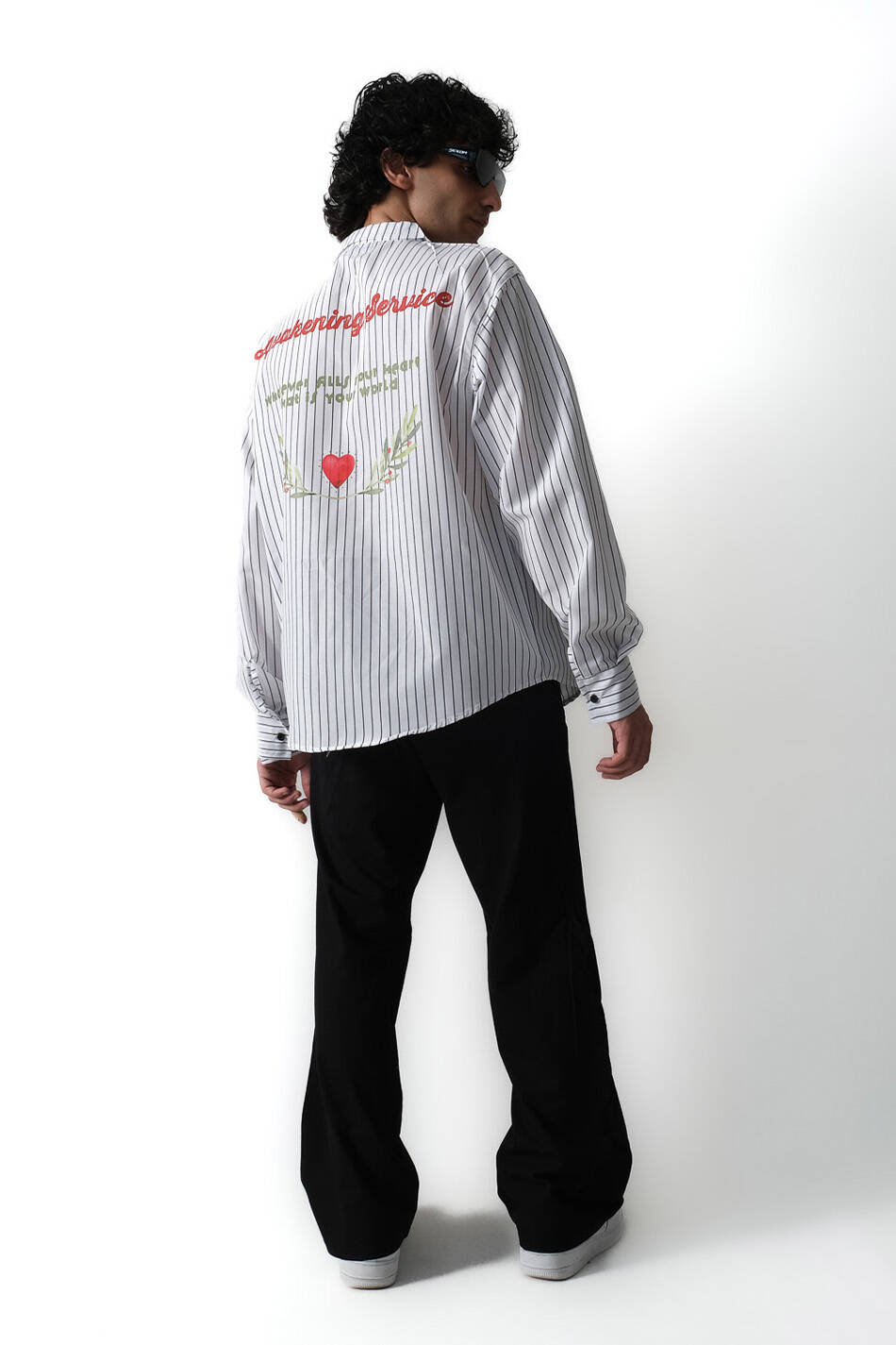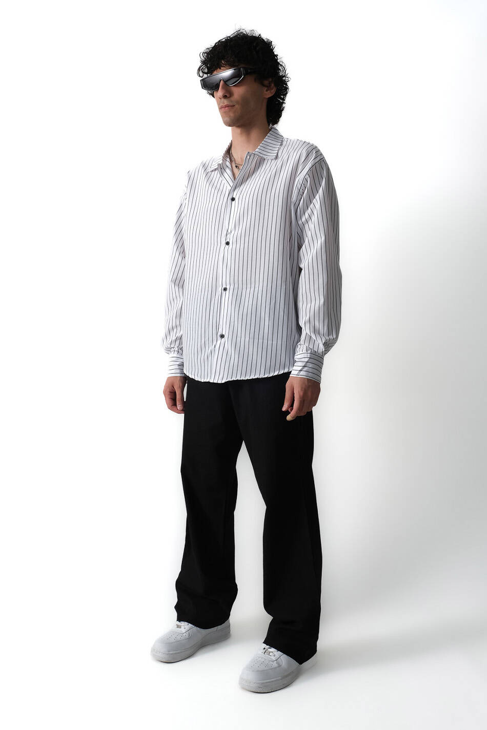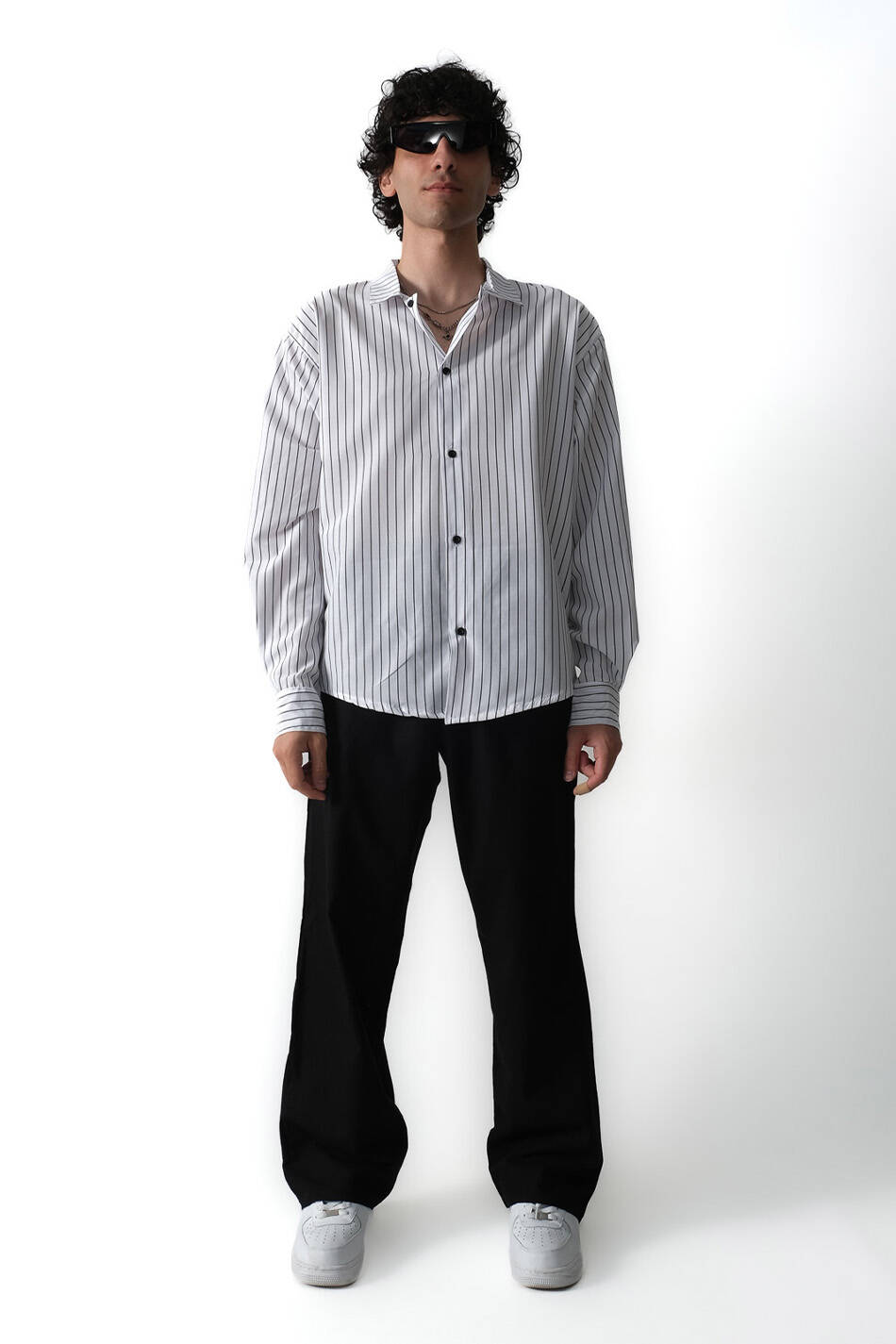 Awakening Service İnce Siyah Çizgili Oversize Gömlek