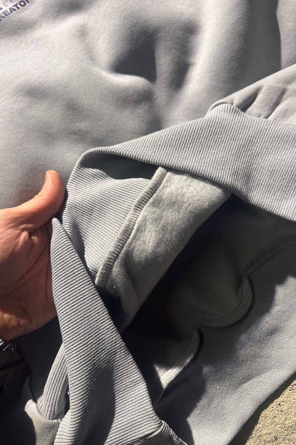 Pamuk karışımlı Oeko Tex sertifikalı kumaştan üretilmiş ve içi yumuşak tüylü orta kalınlıkta baskılı gri oversize sweatshirt. Düşük omuzlu, uzun kollu, manşetleri ve etek uçları esnek kumaştan üretilmiş, bol kesim sweatshirt.