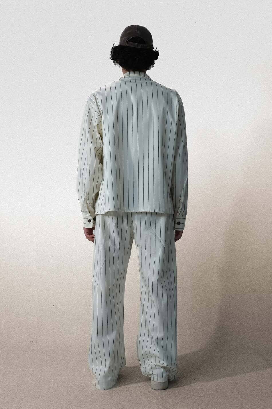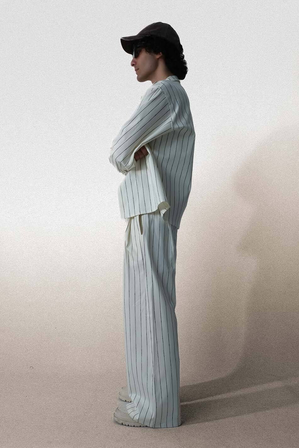 Siyah Çizgili Ekru Çift Pileli Baggy Pantolon