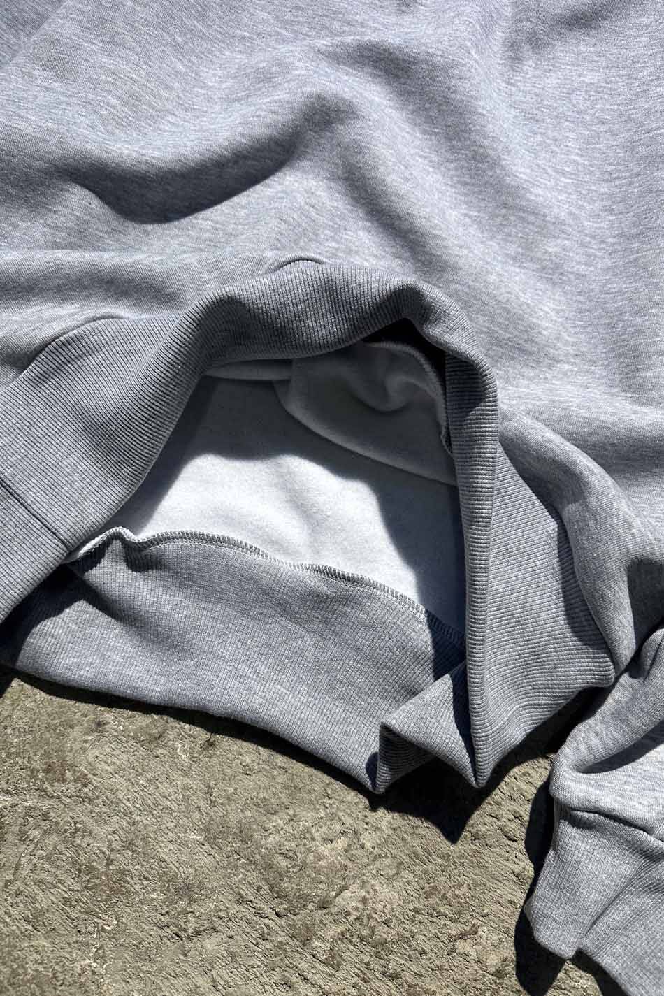 Pamuk karışımlı Oeko Tex sertifikalı kumaştan üretilmiş ve içi yumuşak tüylü orta kalınlıkta gri melanj oversize sweatshirt.Düşük omuzlu, uzun kollu, manşetleri ve etek uçları esnek kumaştan üretilmiş, bol kesim sweatshirt.