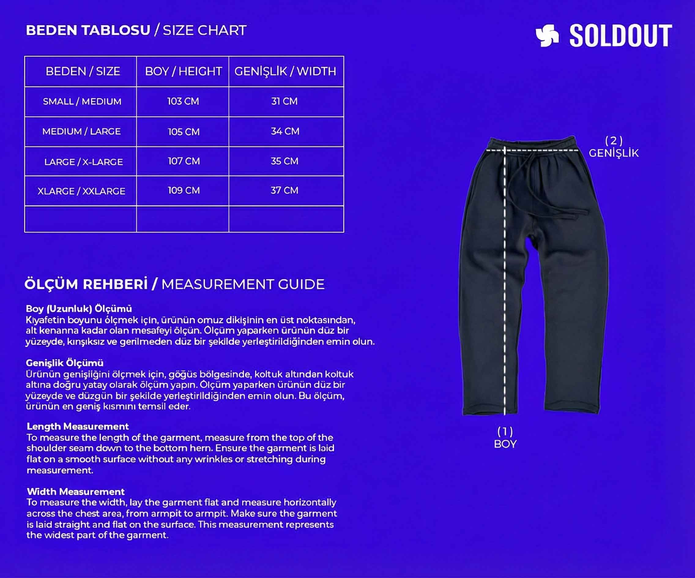 %100 pamuk, ağır ve kalın, sık dokulu, hafif şardonlu, 450 gsm Oeko-Tex sertifikalı kumaştan üretilmiş baggy heavyweight eşofman altı. Beli ayarlanabilir ipli, paçaları geniş kesimdir. Günlük kullanımda maksimum konfor sunan yumuşak iç yüzeyiyle premium bir hissiyat sağlar.