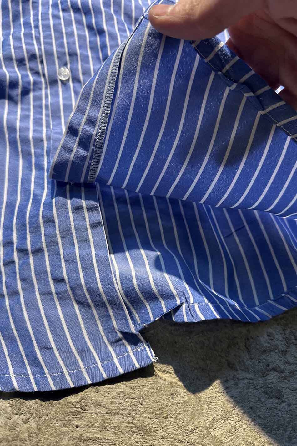 Çizgili oversize gömlek. Pamuklu kumaşşan üretilmiş, dikey çizgili oversize gömlek. Düğmeli manşetleri ve önden tam düğme kapamalı tasarımıyla klasik bir silüete sahiptir. Etek ucu yuvarlak kesim olup, bol kesimi sayesinde rahat bir kullanım sunar.