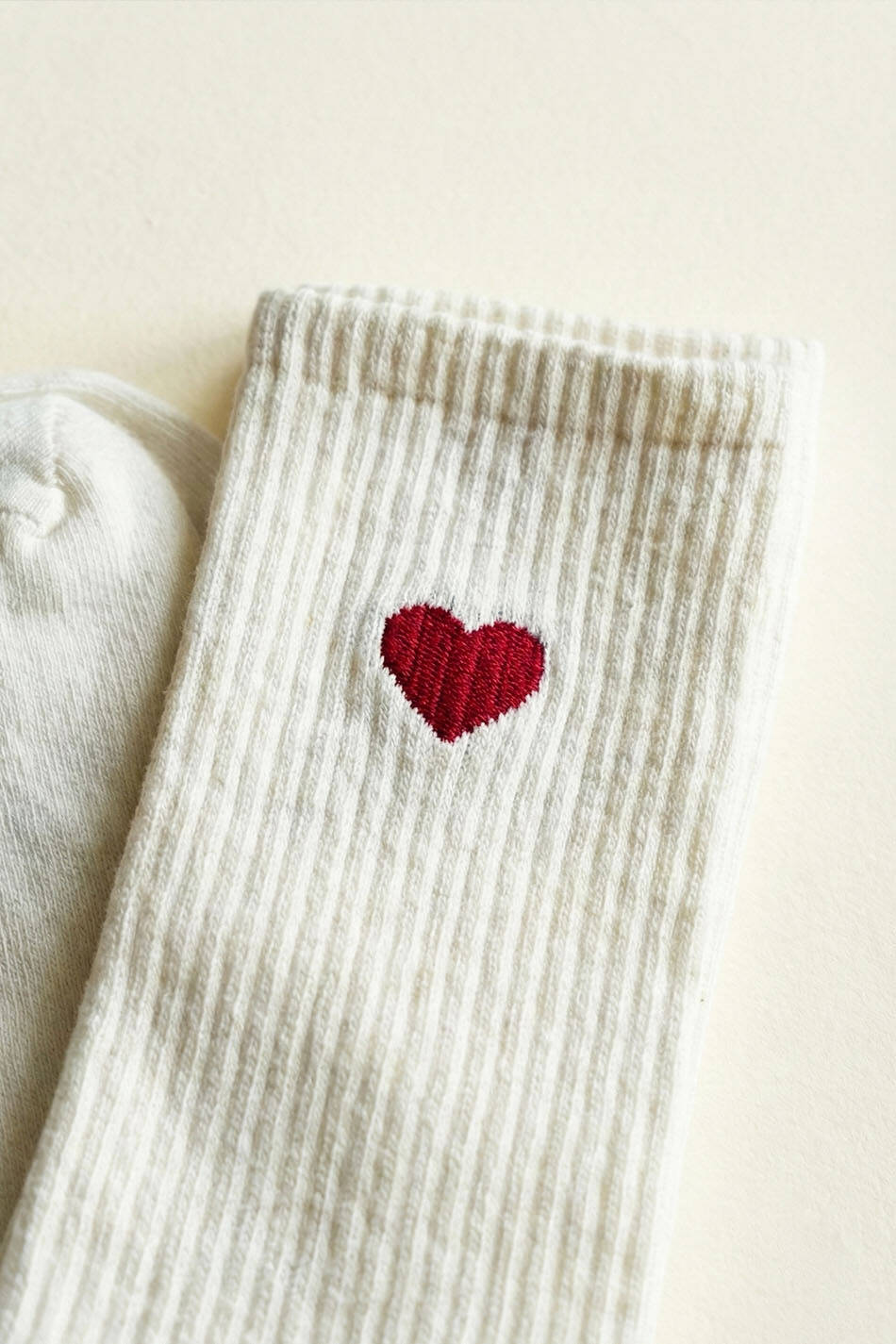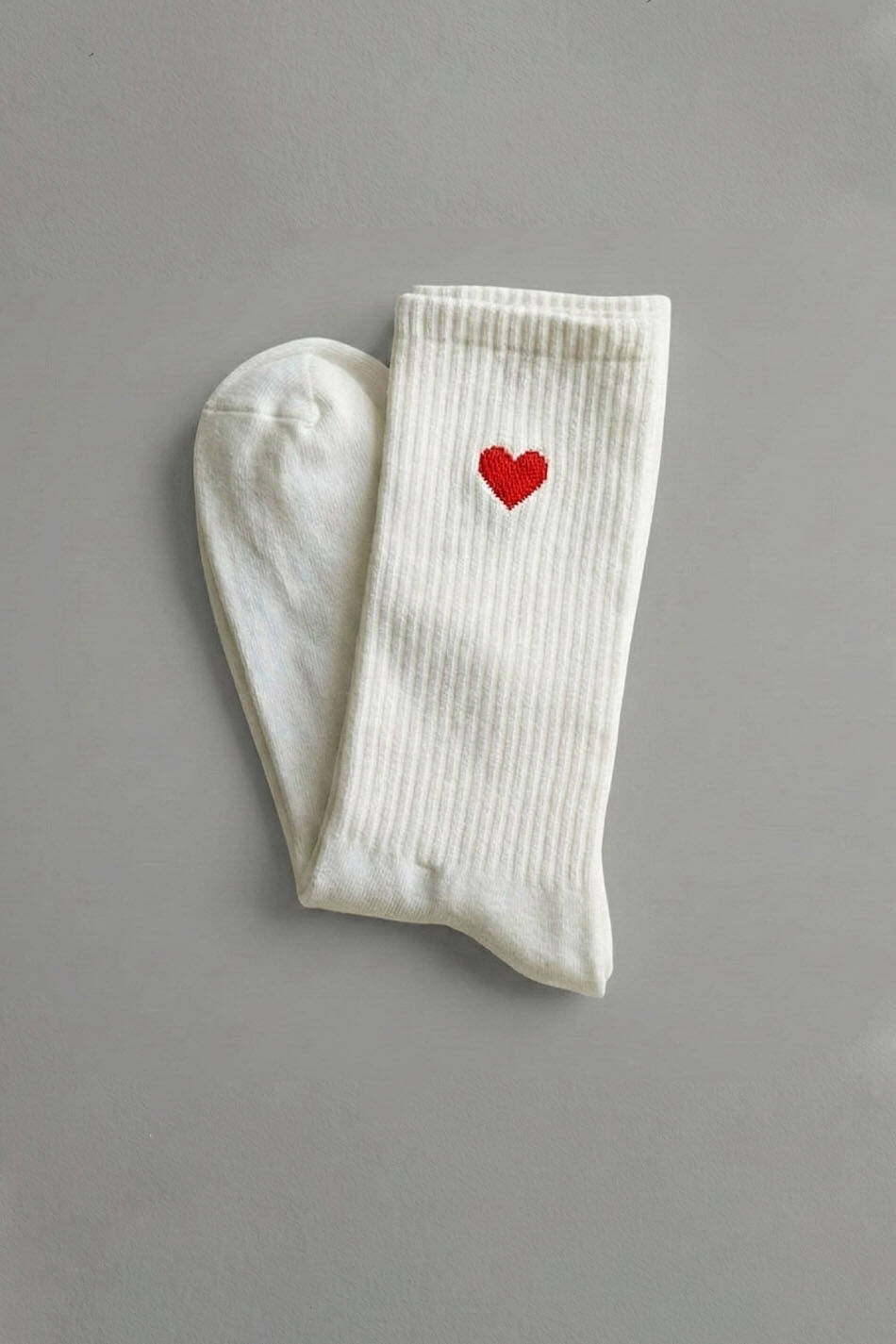 Uzun konçlu kalp detaylı çorap. Standart bedendir.