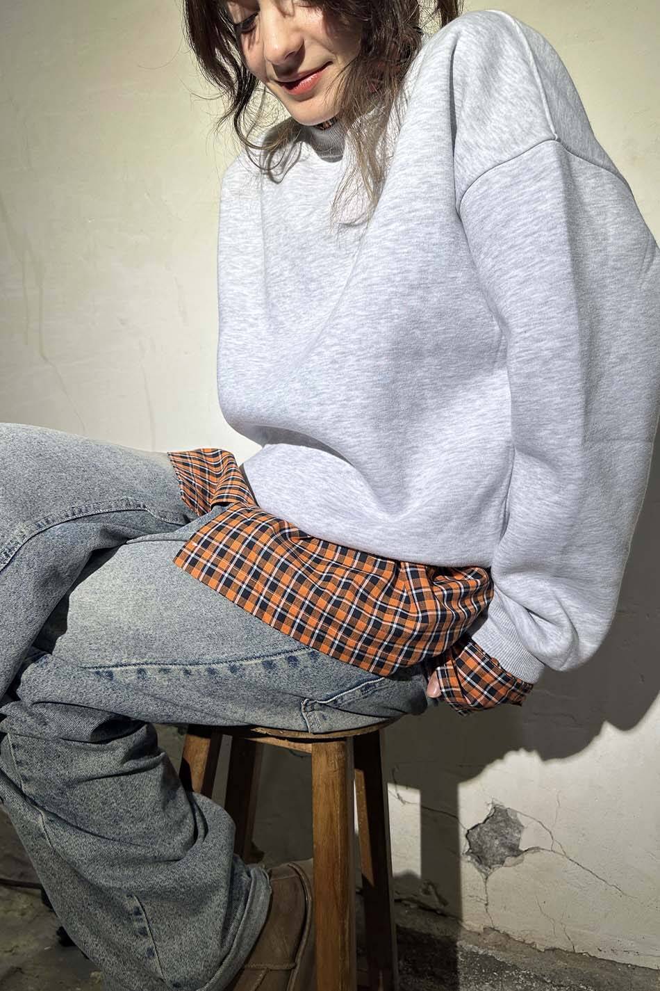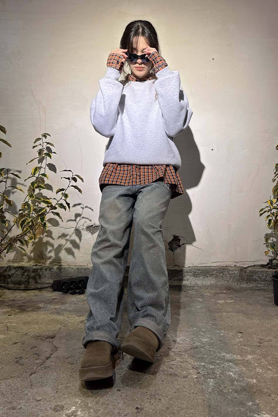 Pamuk karışımlı Oeko Tex sertifikalı kumaştan üretilmiş ve içi yumuşak tüylü orta kalınlıkta kar melanj oversize sweatshirt.Düşük omuzlu, uzun kollu, manşetleri ve etek uçları esnek kumaştan üretilmiş, bol kesim sweatshirt.