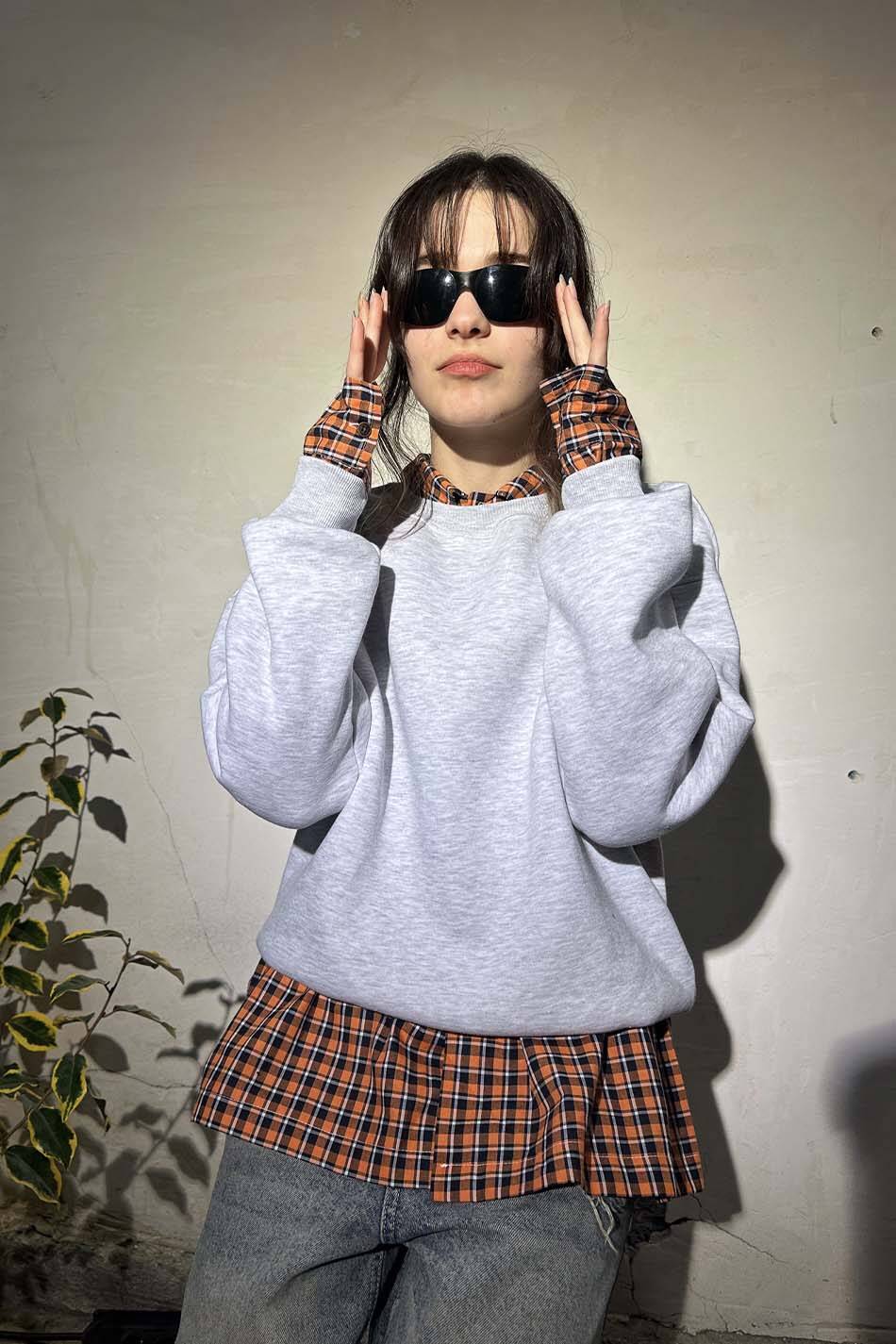 Pamuk karışımlı Oeko Tex sertifikalı kumaştan üretilmiş ve içi yumuşak tüylü orta kalınlıkta gri melanj oversize sweatshirt.Düşük omuzlu, uzun kollu, manşetleri ve etek uçları esnek kumaştan üretilmiş, bol kesim sweatshirt.