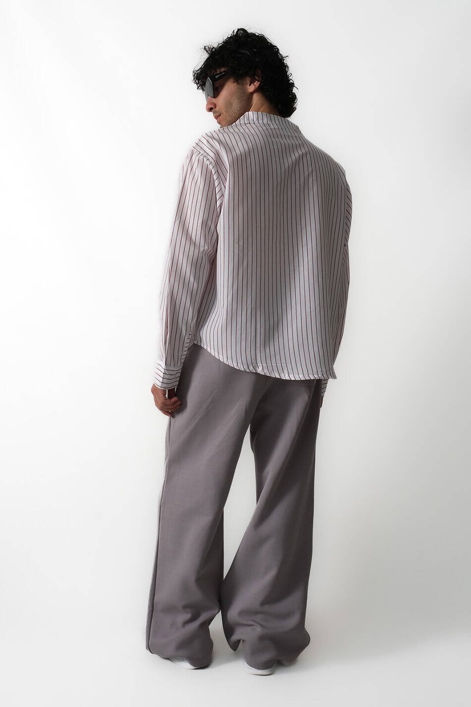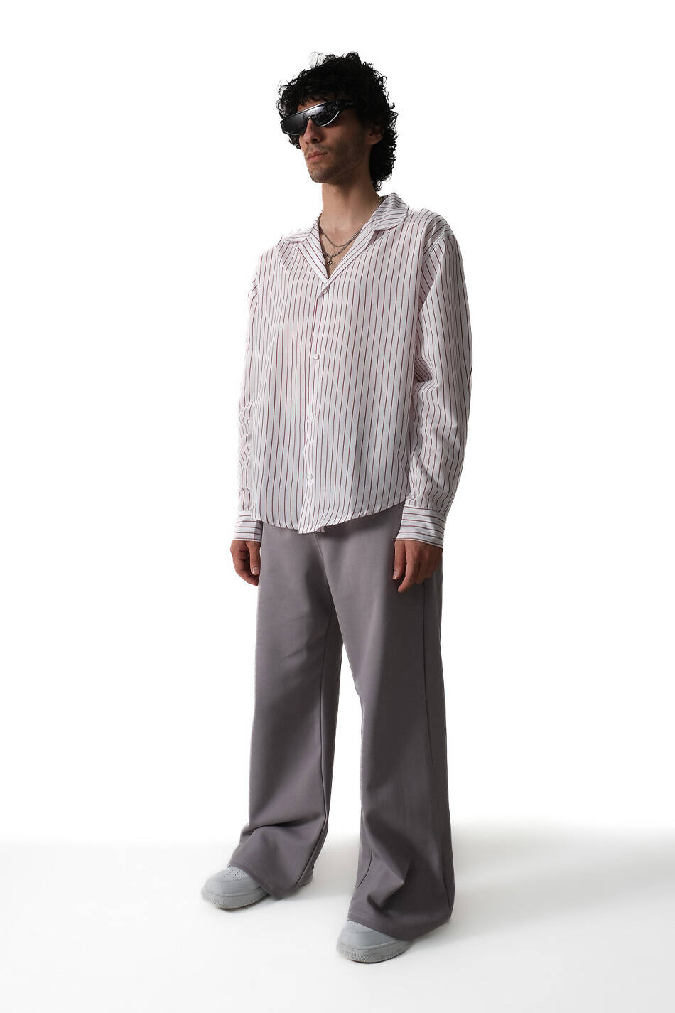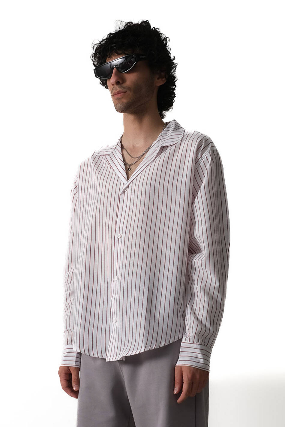 İnce Kırmızı Çizgili Old Money Oversize Gömlek