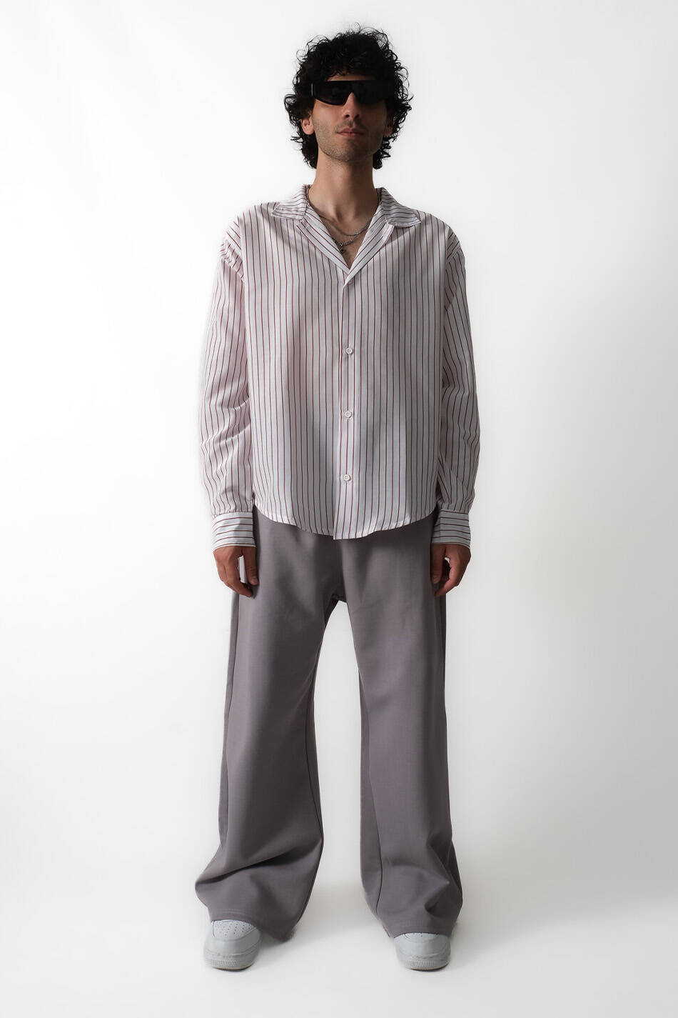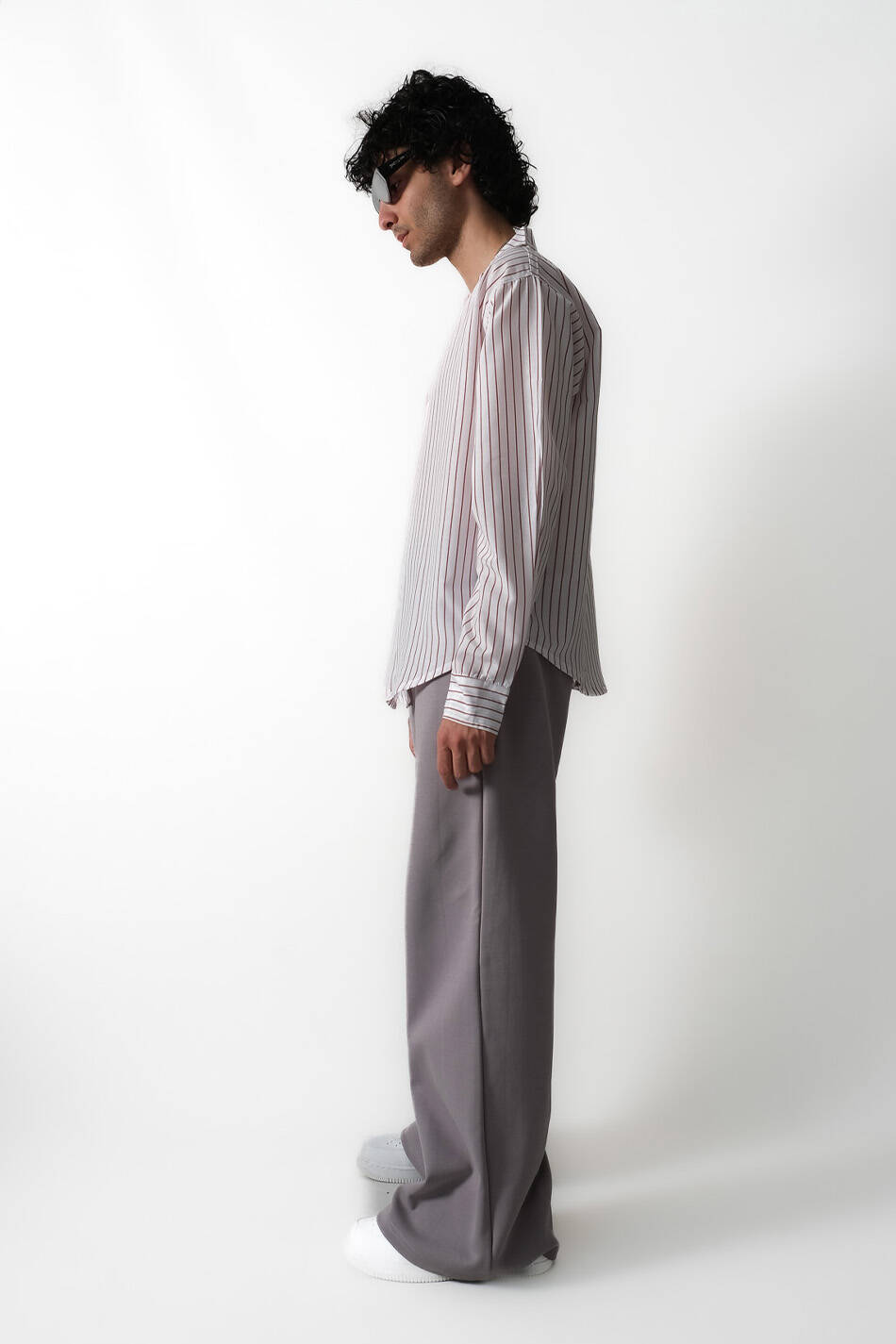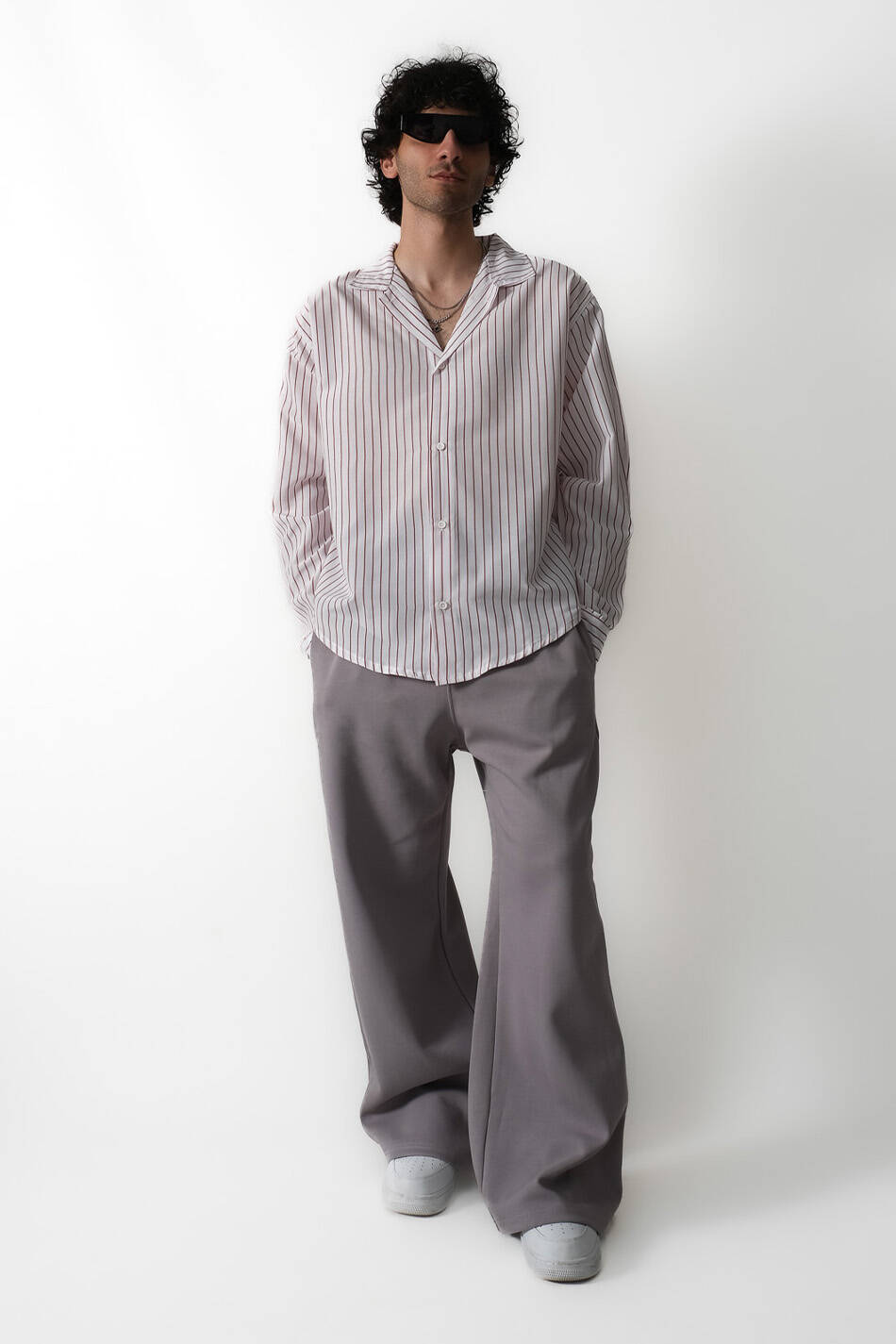 İnce Kırmızı Çizgili Old Money Oversize Gömlek
