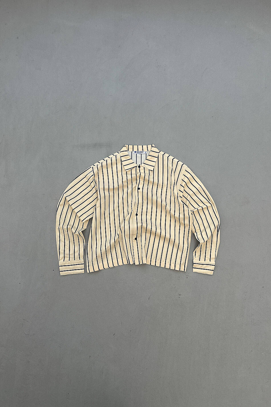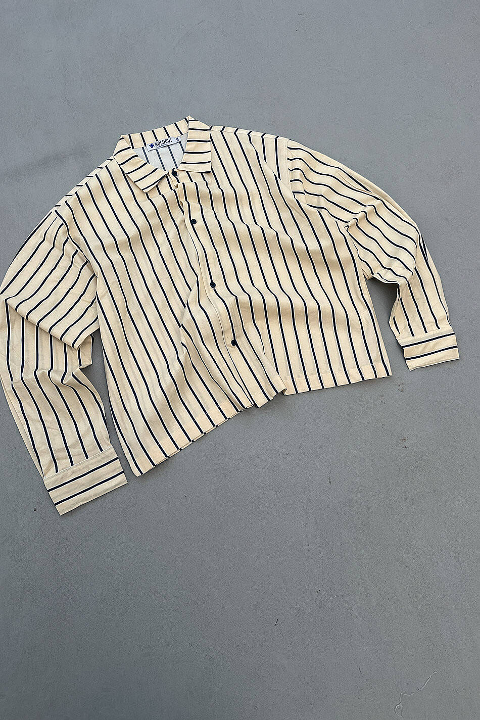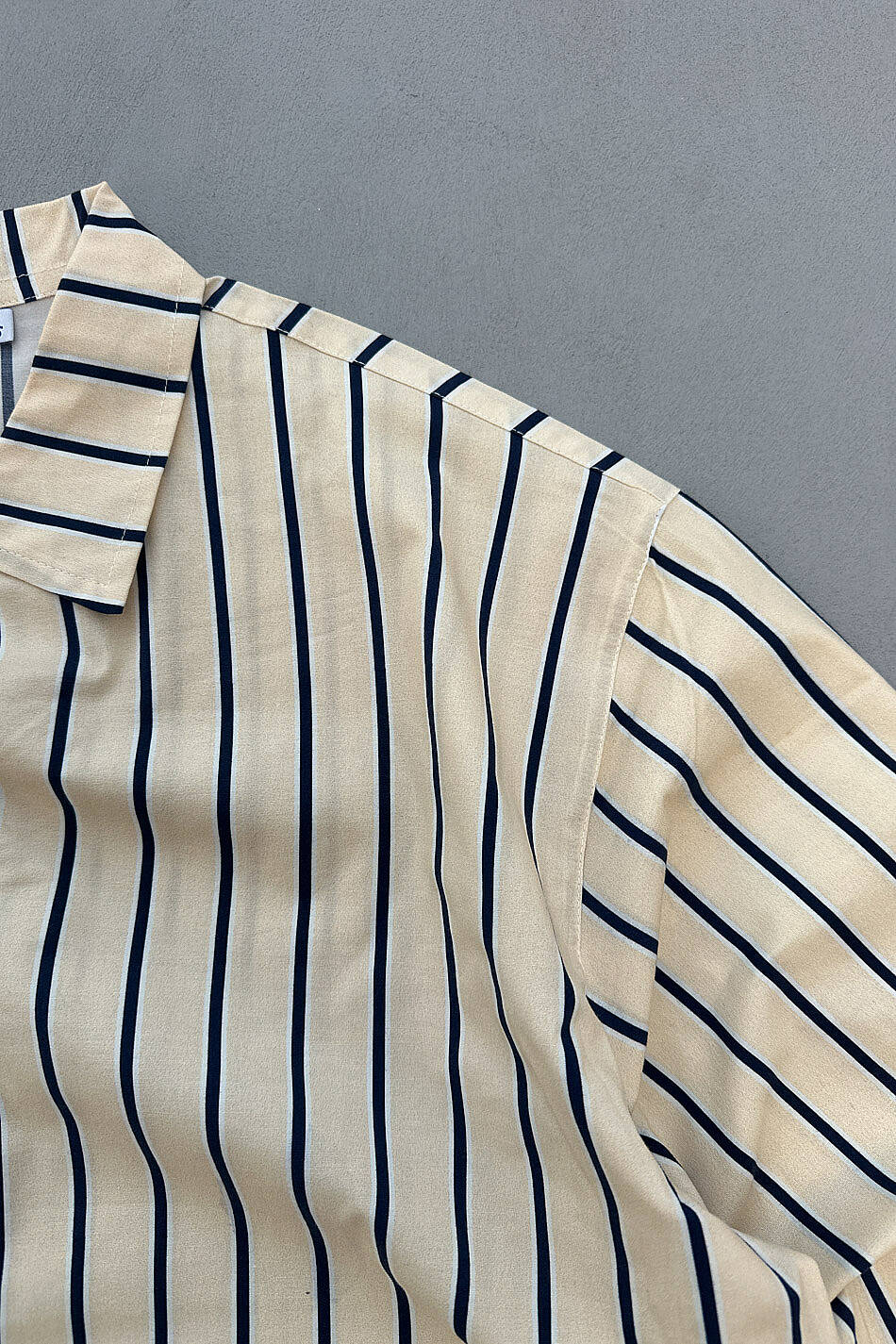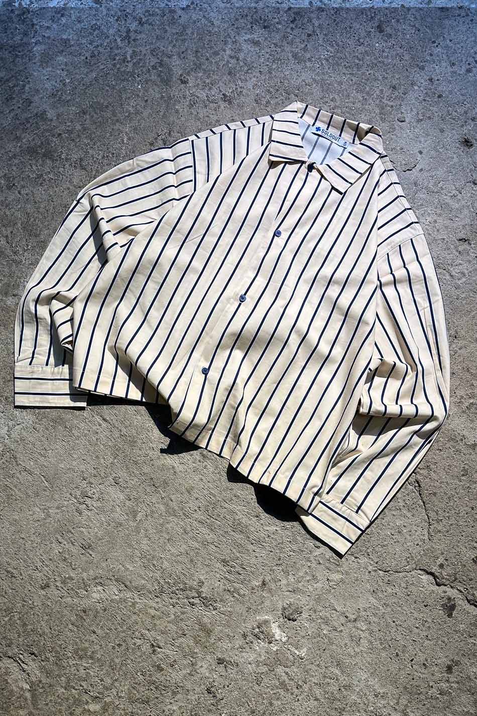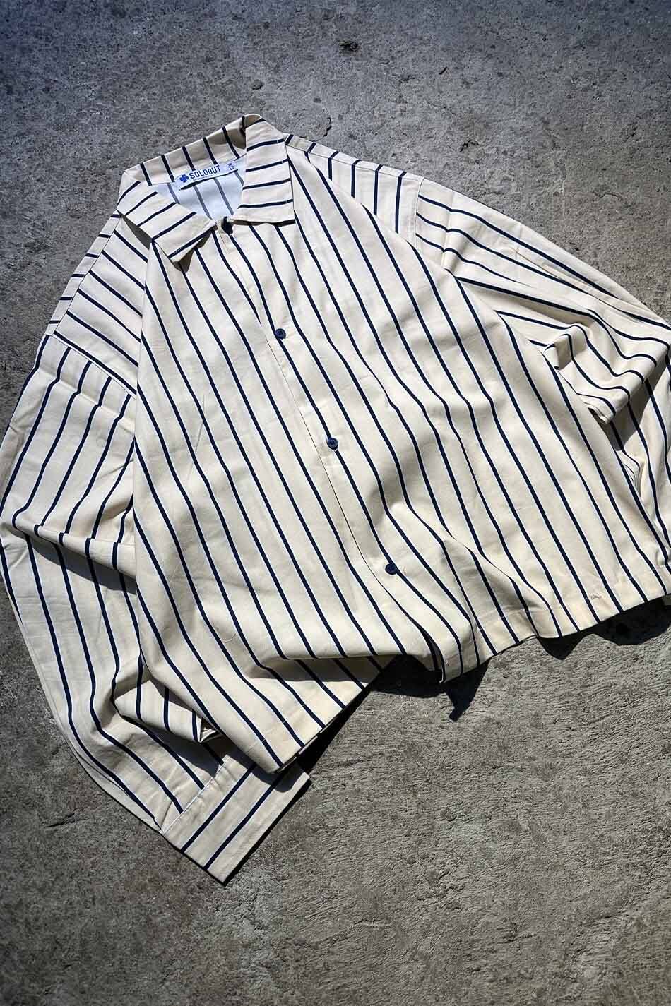 Lacivert Çizgili Bej Oversize Gömlek