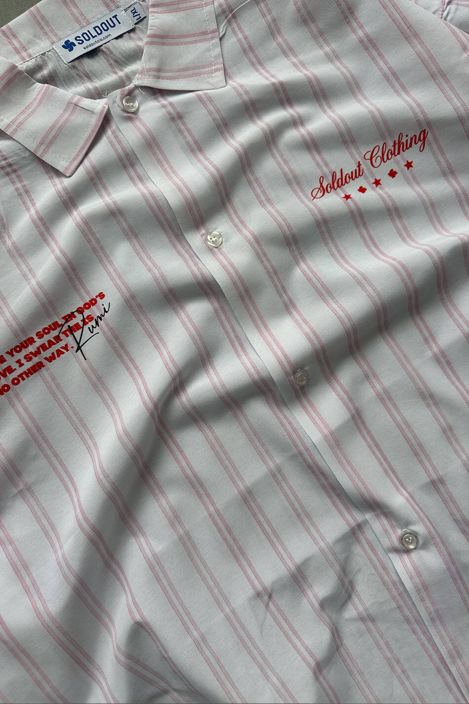 Kendinden katmanlı (layered) tasarımıyla gömlek kollarının içinden beyaz uzun kollu tişört parçası çıkmaktadır. Geniş ve kısa (boxy fit) kalıbıyla dökümlü bir kullanım sunan ürün, önden tam düğme kapamalıdır.