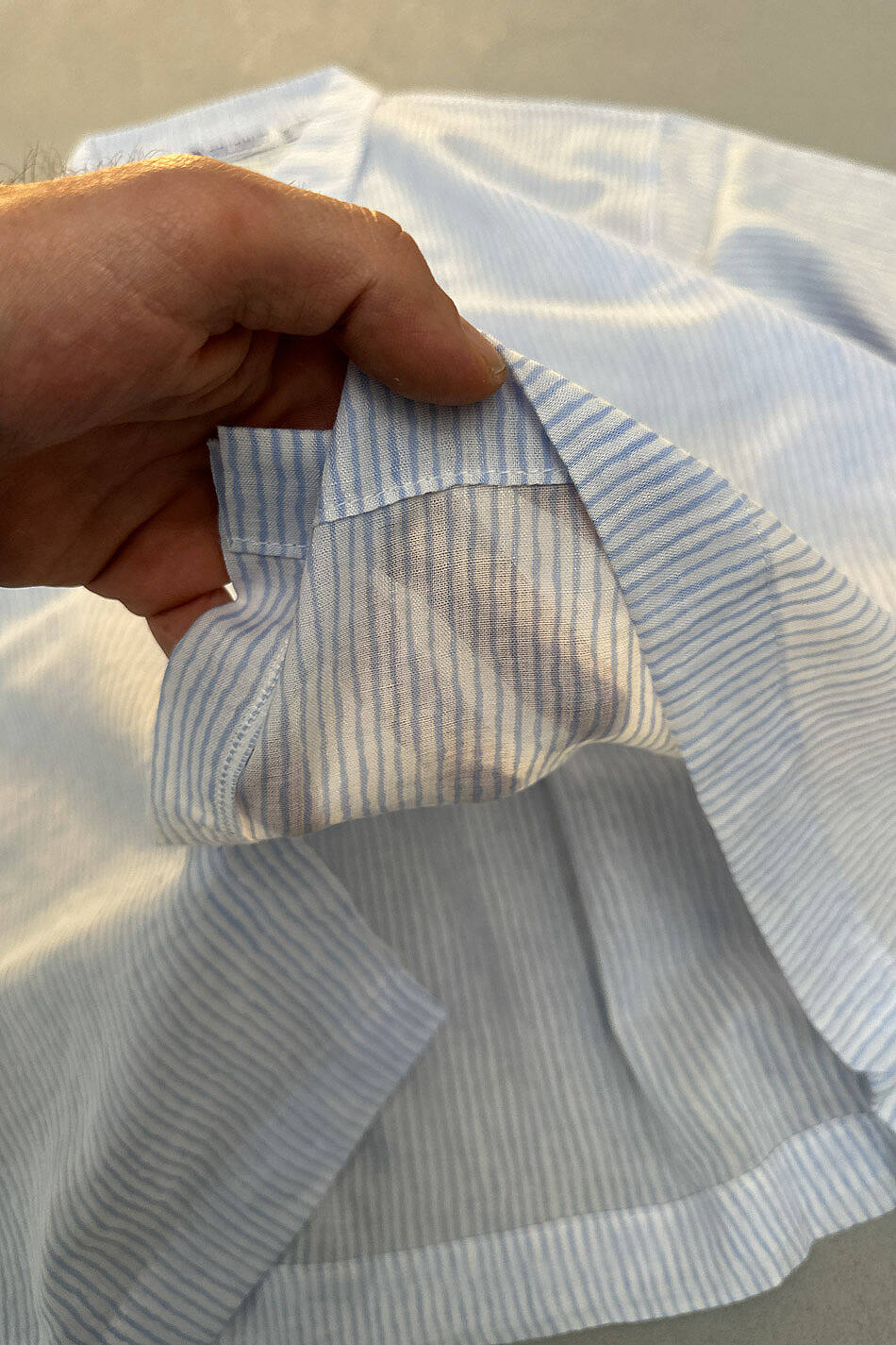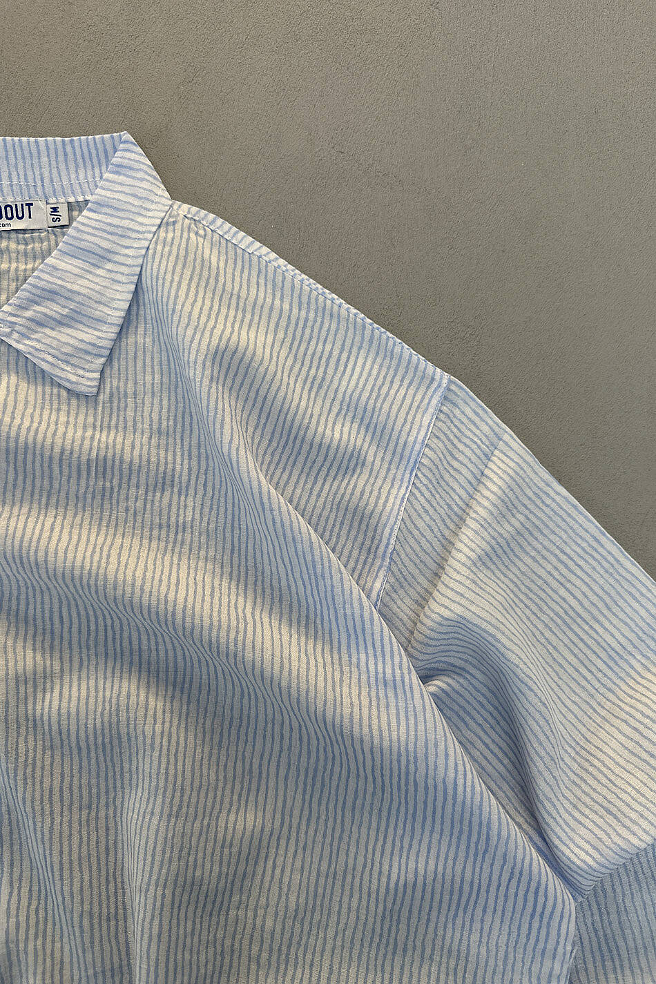 Çizgili oversize gömlek. Pamuklu kumaşşan üretilmiş, dikey çizgili oversize gömlek. Düğmeli manşetleri ve önden tam düğme kapamalı tasarımıyla klasik bir silüete sahiptir. Etek ucu yuvarlak kesim olup, bol kesimi sayesinde rahat bir kullanım sunar.