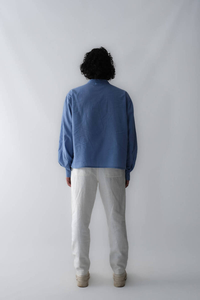 Mavi Boxy Fit Crop Pamuk Gömlek. %100 doğal organik pamuklu kumaştan üretilmiştir. Düğmeli manşetleri ve önden tam düğme kapamalı tasarımıyla klasik bir silüete sahiptir. Etek ucu düz kesim olup, bol kesimi sayesinde rahat bir kullanım sunar.