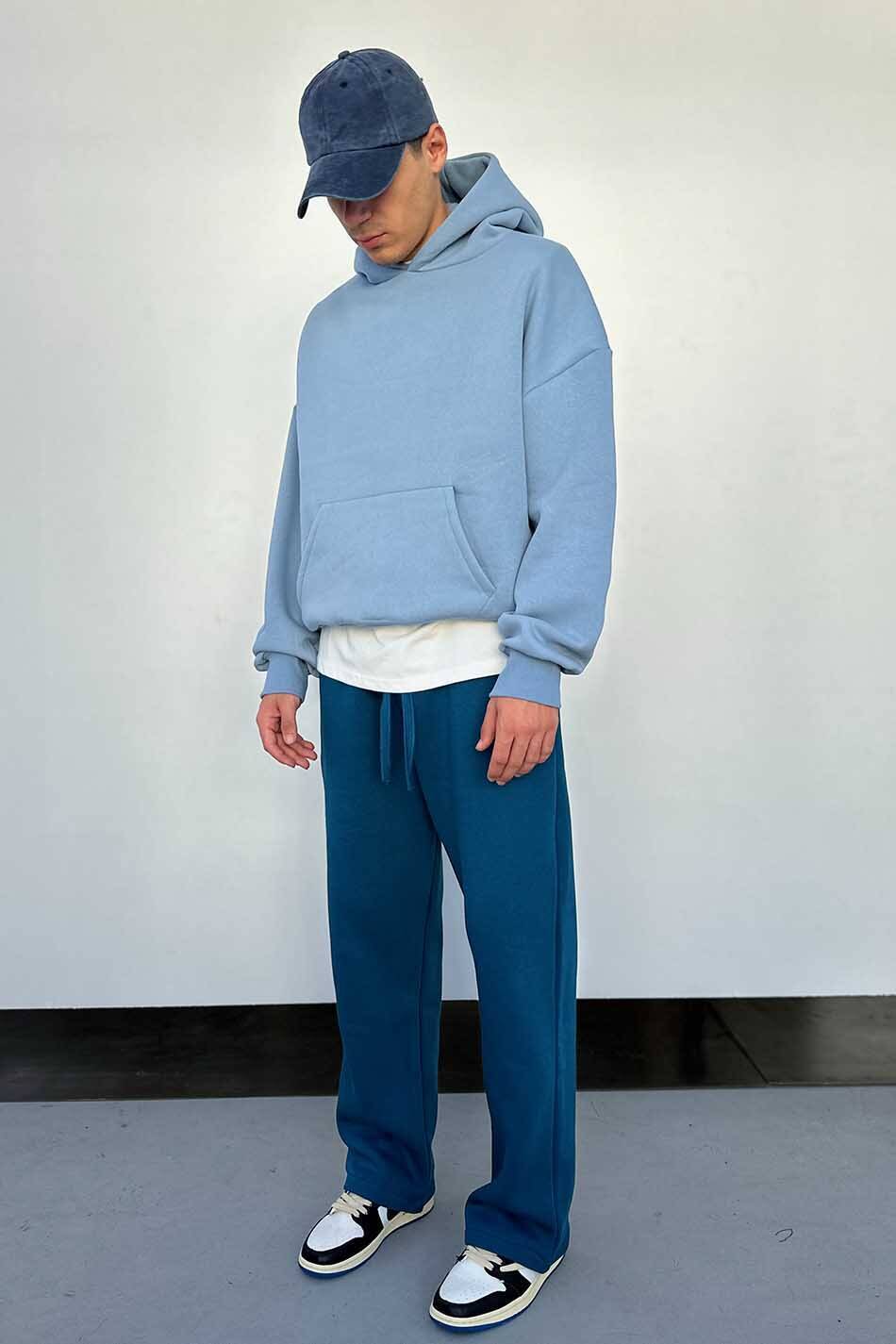 Pamuk karışımlı Oeko Tex sertifikalı kumaştan üretilmiş ve içi yumuşak tüylü orta kalınlıkta oversize boxy fit kapüşonlu sweatshirt. Kapüşonu astarlı, düşük omuzlu, uzun kollu, kanguru cepli, manşetleri ve etek ucu geniş ribanalı.
