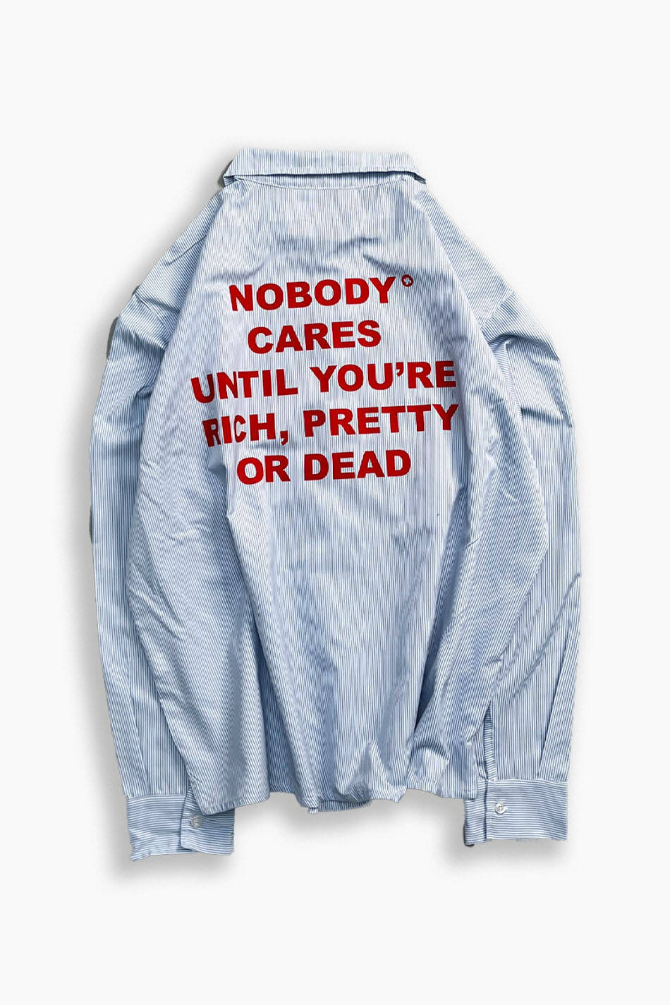 Nobody Cares İnce Mavi Çizgili Oversize Gömlek
