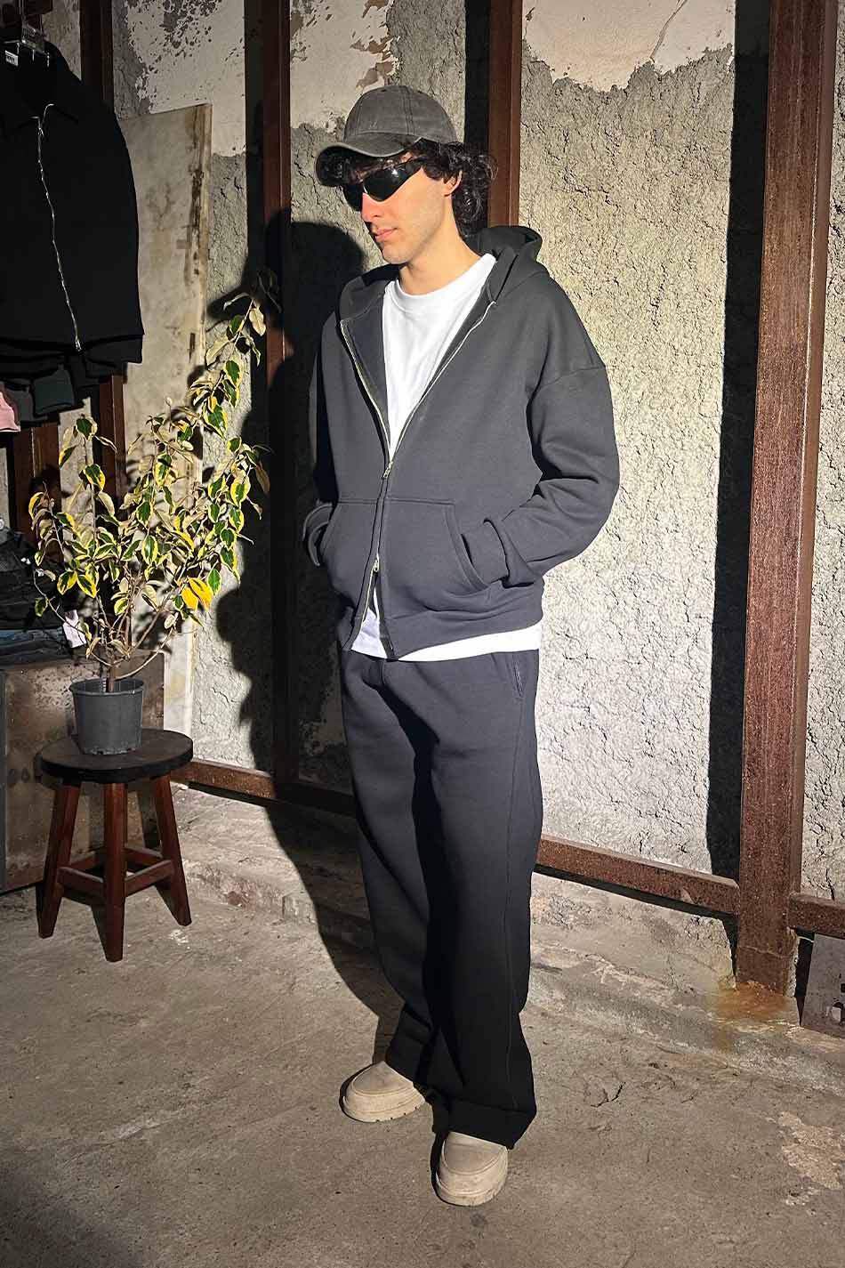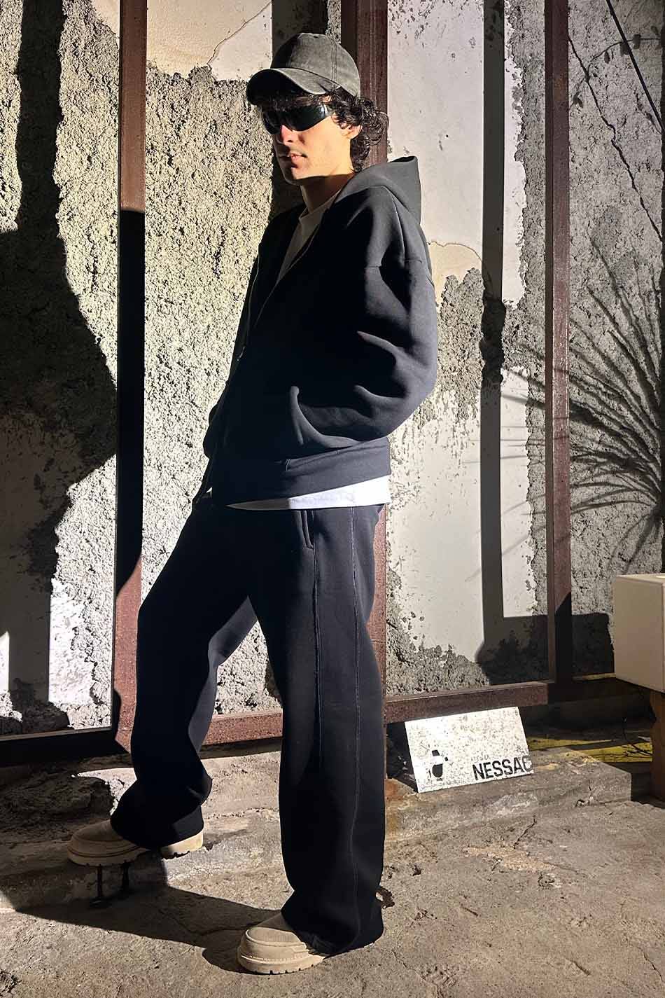 %100 pamuk, ağır ve kalın, sık dokulu, hafif şardonlu, 550gsm Oeko-Tex sertifikalı kumaştan üretilmiş baggy heavyweight eşofman altı.