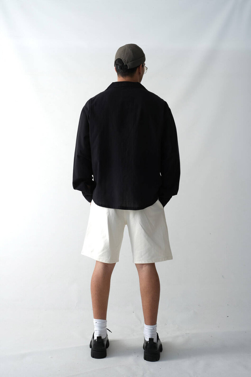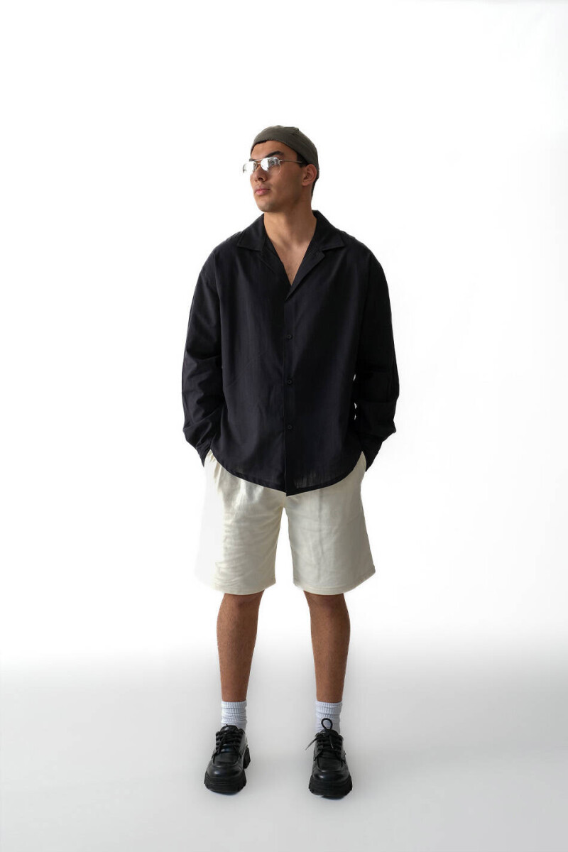 Siyah Oversize %100 Pamuk İnce Gömlek x Oversize Pileli Krem Şort