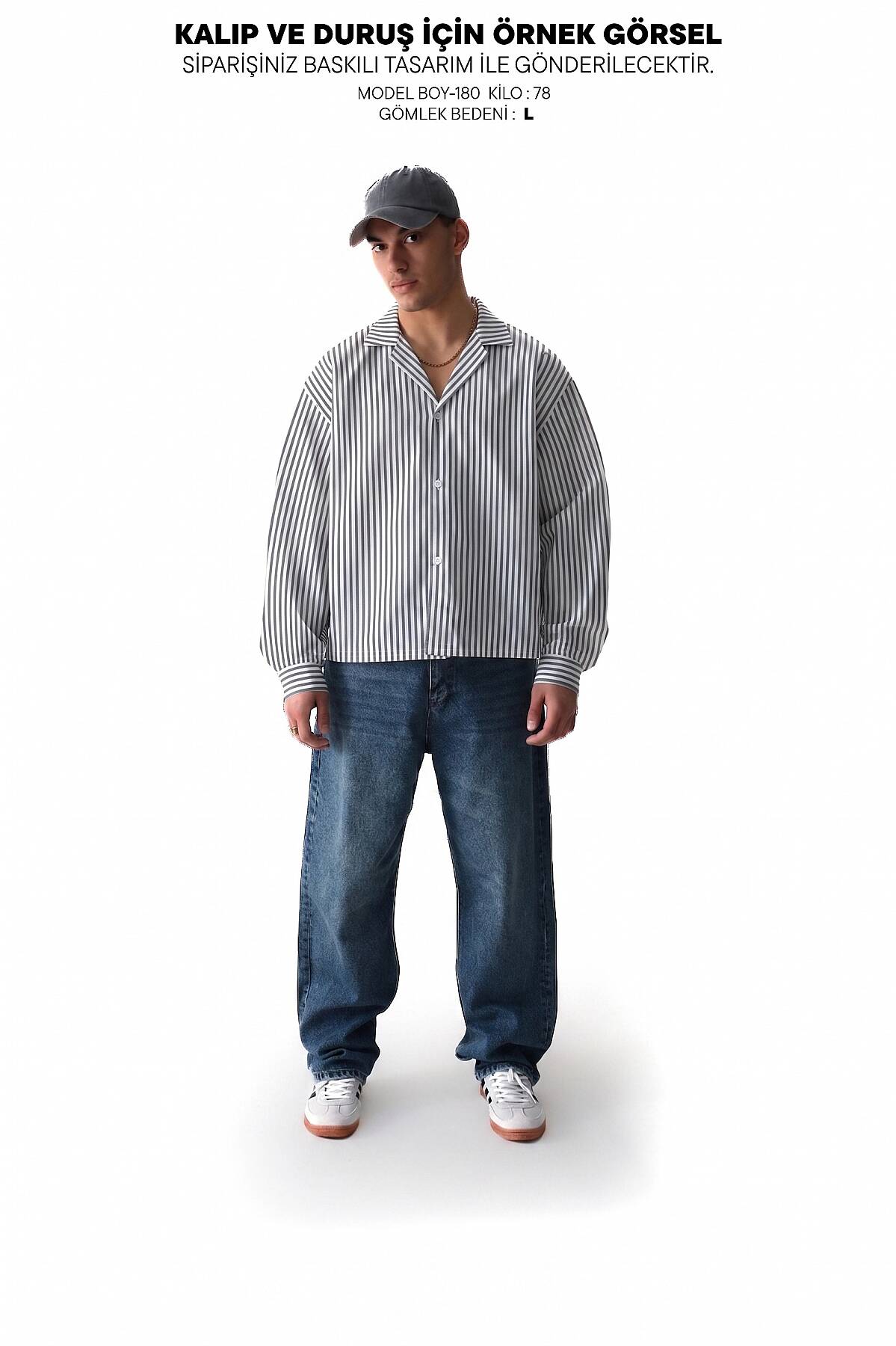 Baskılı Çizgili oversize old money gömlek. Pamuklu kumaştan üretilmiş, dikey çizgili oversize gömlek. Düğmeli manşetleri ve önden tam düğme kapamalı tasarımıyla klasik bir silüete sahiptir. Etek ucu oval kesim olup, bol kesimi sayesinde rahat bir kullanım sunar.