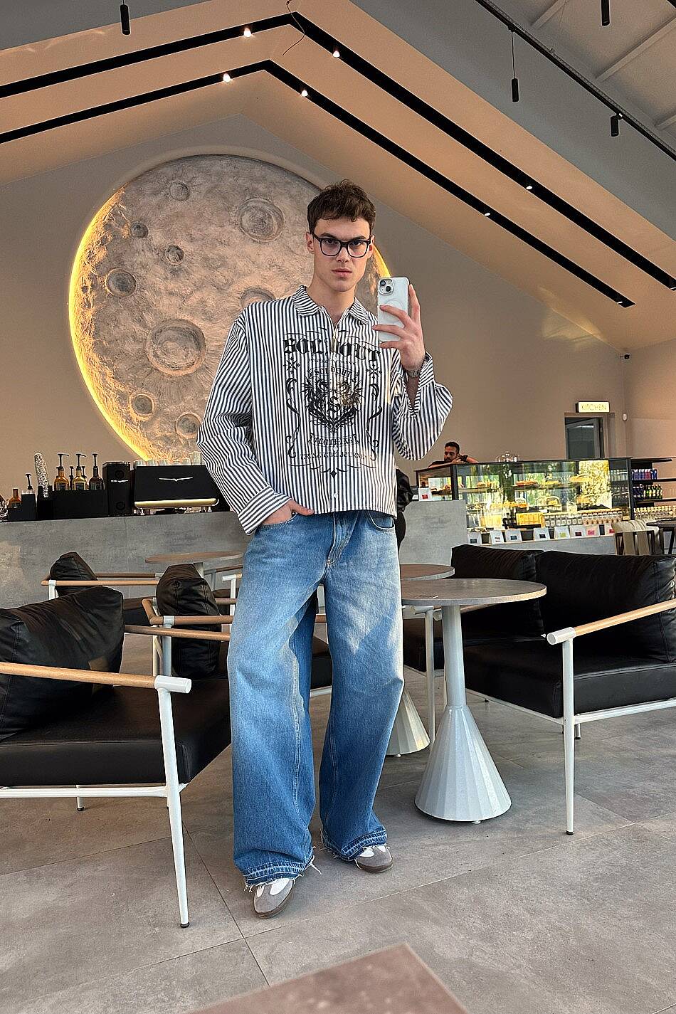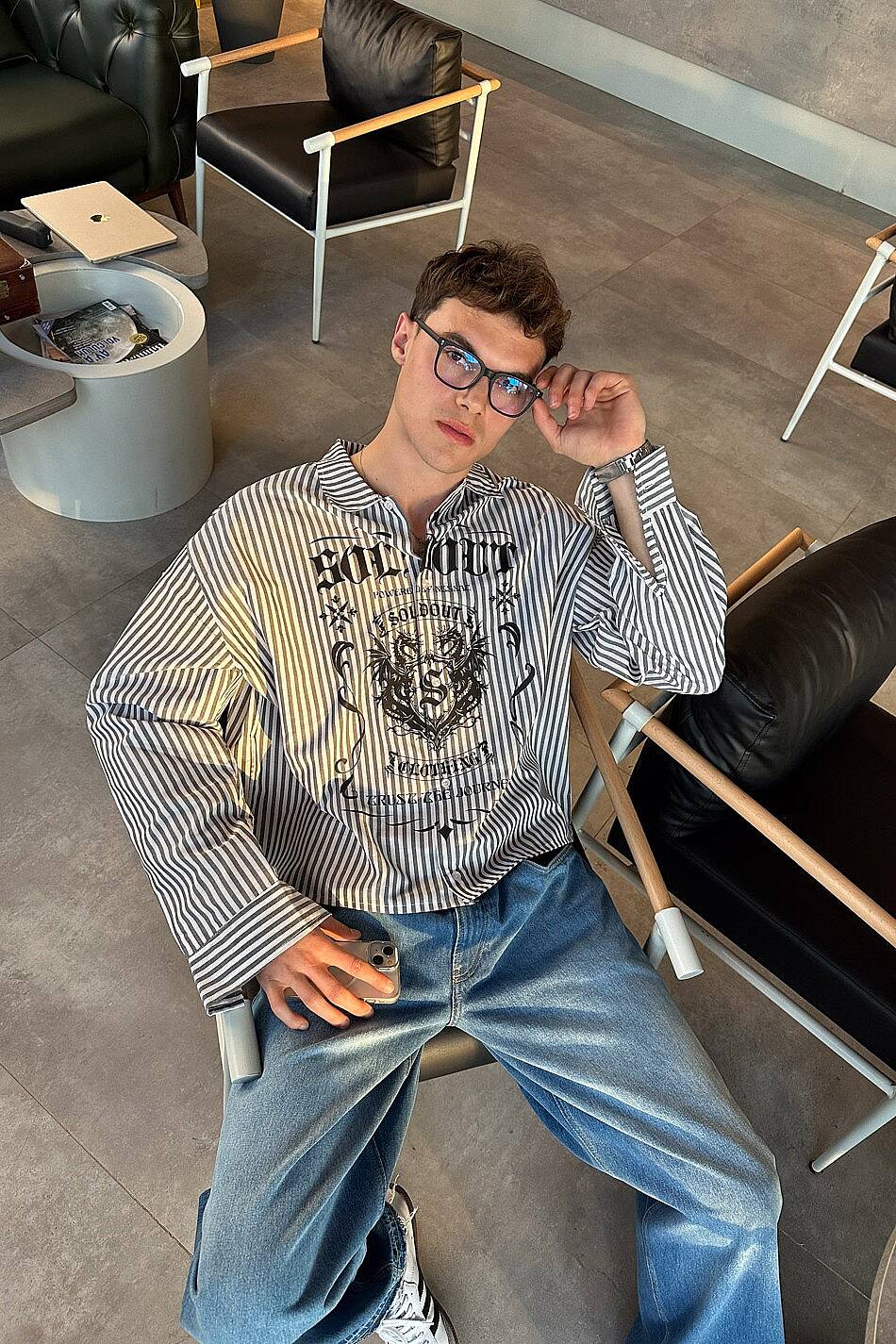 Baskılı Çizgili oversize old money gömlek. Pamuklu kumaştan üretilmiş, dikey çizgili oversize gömlek. Düğmeli manşetleri ve önden tam düğme kapamalı tasarımıyla klasik bir silüete sahiptir. Etek ucu oval kesim olup, bol kesimi sayesinde rahat bir kullanım sunar.