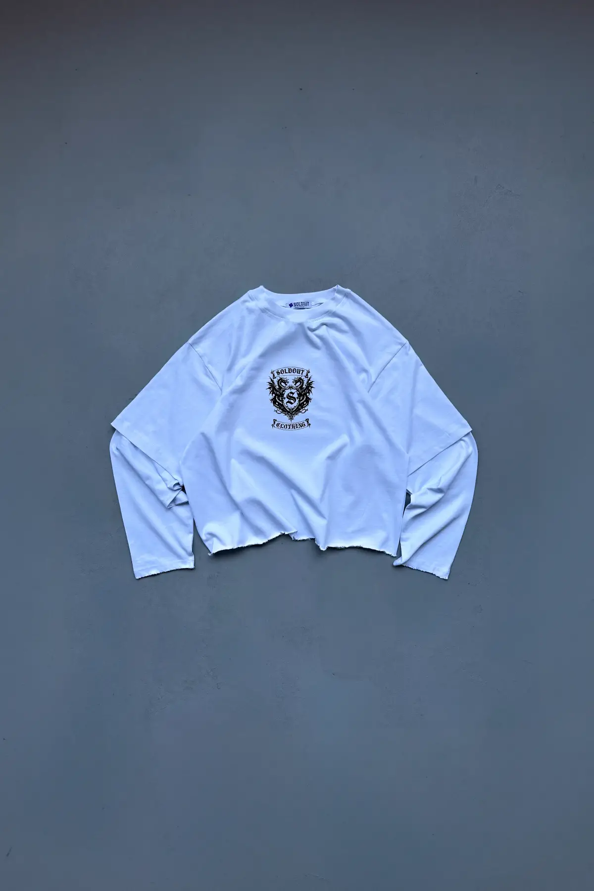 16/1 iplikten üretilmiş, %100 pamuk 220gsm ağırlığında kumaşa sahip boxy fit layered long sleeve. Düşük omuzlu ve geniş kesimli gövde yapısına, çift katmanlı görünüm sunan layered sleeve (katmanlı kol) tasarımı eşlik eder. Ön tarafında dtf yöntemiyle uygulanmış baskı bulunurken, alt etek uçları dikişsiz ve yırtık detaylı (distressed) bitişe sahiptir. Tok duruşu ve pamuklu dokusuyla tek başına veya katmanlı kombinlerde kullanıma uygundur.