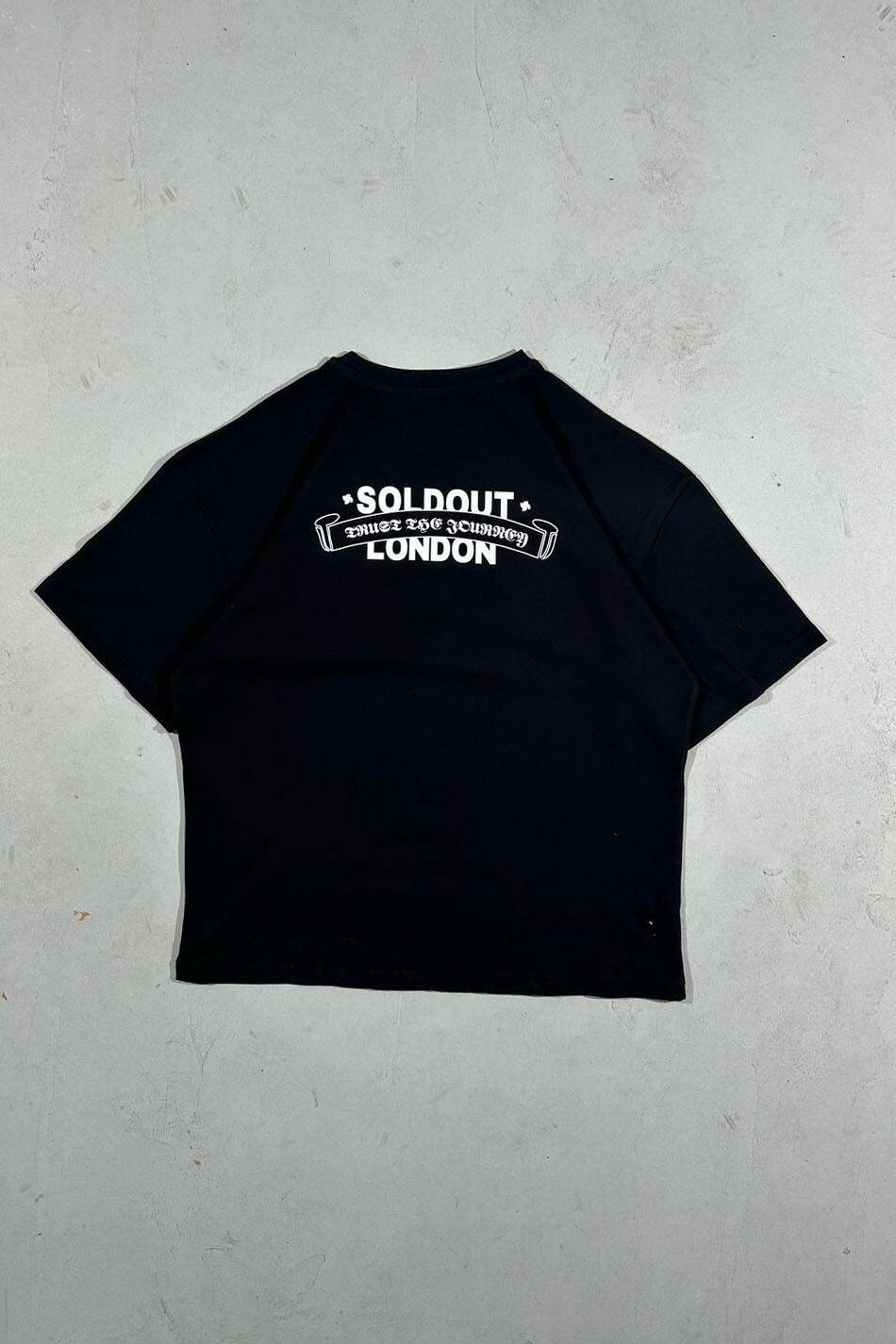 Trust The Journey Baskılı Siyah Oversize Tişört