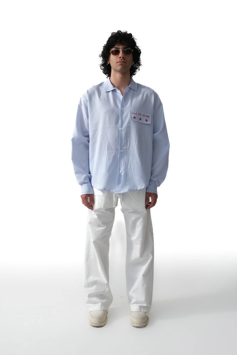 Trust The Journey Baskılı Çizgili oversize old money gömlek. Pamuklu kumaştan üretilmiş, dikey çizgili oversize gömlek. Düğmeli manşetleri ve önden tam düğme kapamalı tasarımıyla klasik bir silüete sahiptir. Etek ucu yuvarlak kesim olup, bol kesimi sayesinde rahat bir kullanım sunar.