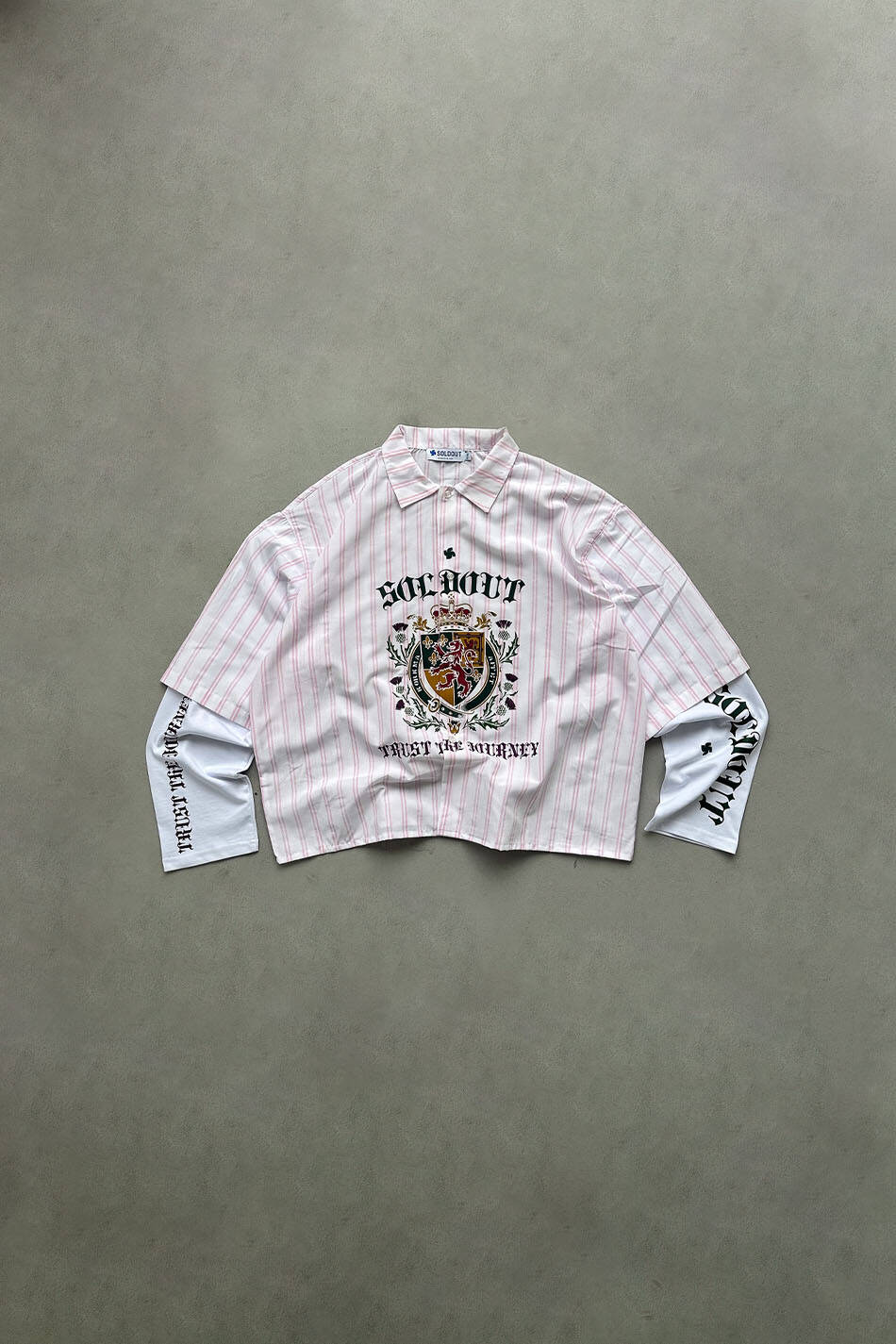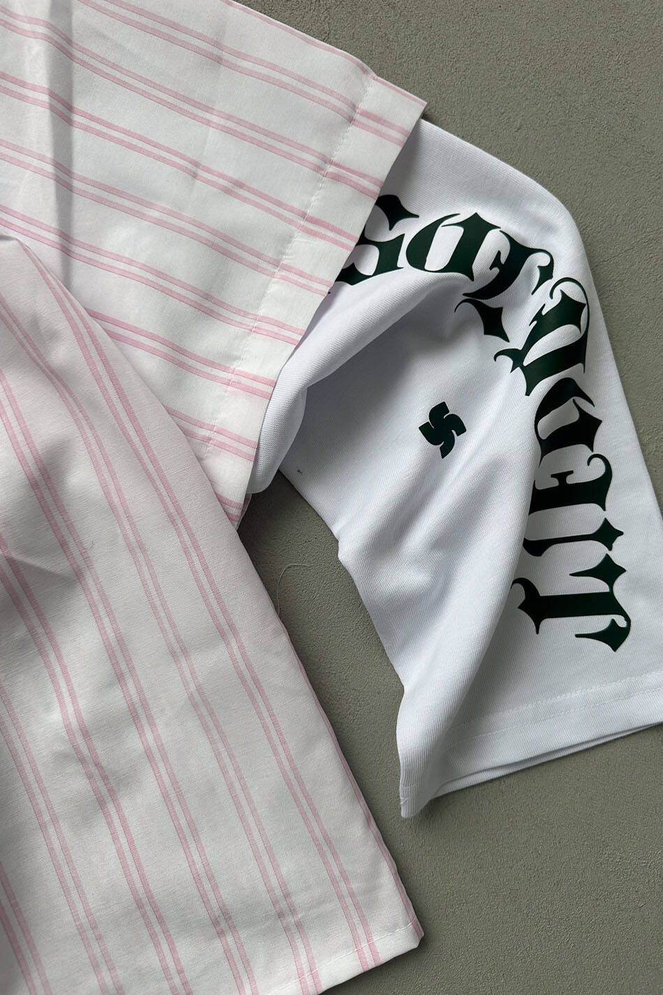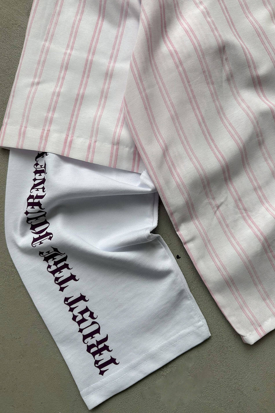Trust The Journey Pembe Çizgili Boxy Fit Layered Gömlek
