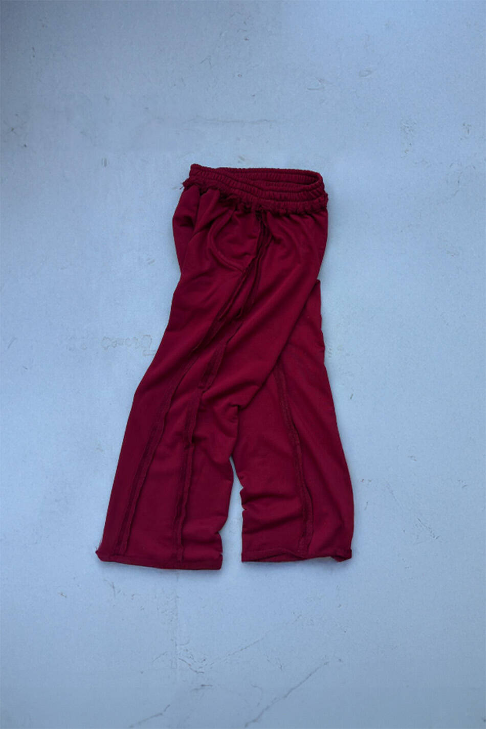 3 iplik şardonsuz örme kumaştan üretilen bu eşofman, geniş paça ve yüksek bel kesimine sahiptir. Bel kısmındaki ham kenarlı fırfır detayı ve ön paneldeki açık ceplere sahip tasarım, belirgin dikiş hatlarıyla hareketlendirilmiştir. Paçalarındaki kıvrımlı bitiş ve iç yüzeydeki dokusuyla salaş bir silüet sunan ürün, rahat kalıbıyla günlük kullanıma uygundur.