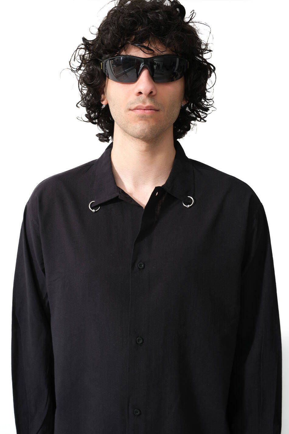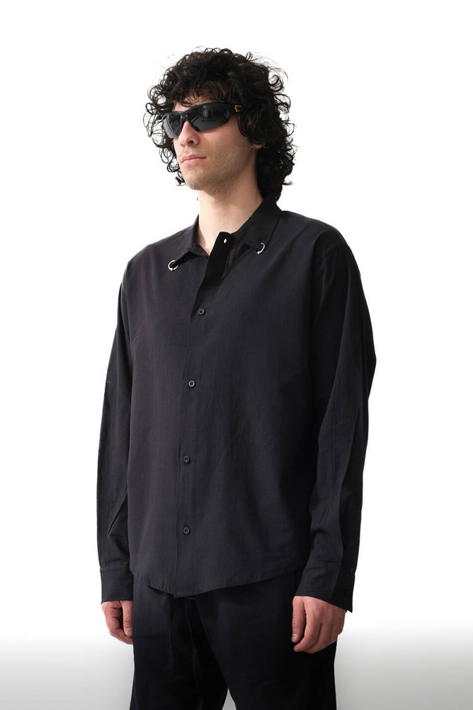 Piercing Detaylı Overisze Pamuk Gömlek. %100 doğal organik pamuktan üretilmiştir. Düğmeli manşetleri ve önden tam düğme kapamalı tasarımıyla klasik bir silüete sahiptir. Etek ucu yuvarlak kesim olup, bol kesimi sayesinde rahat bir kullanım sunar.