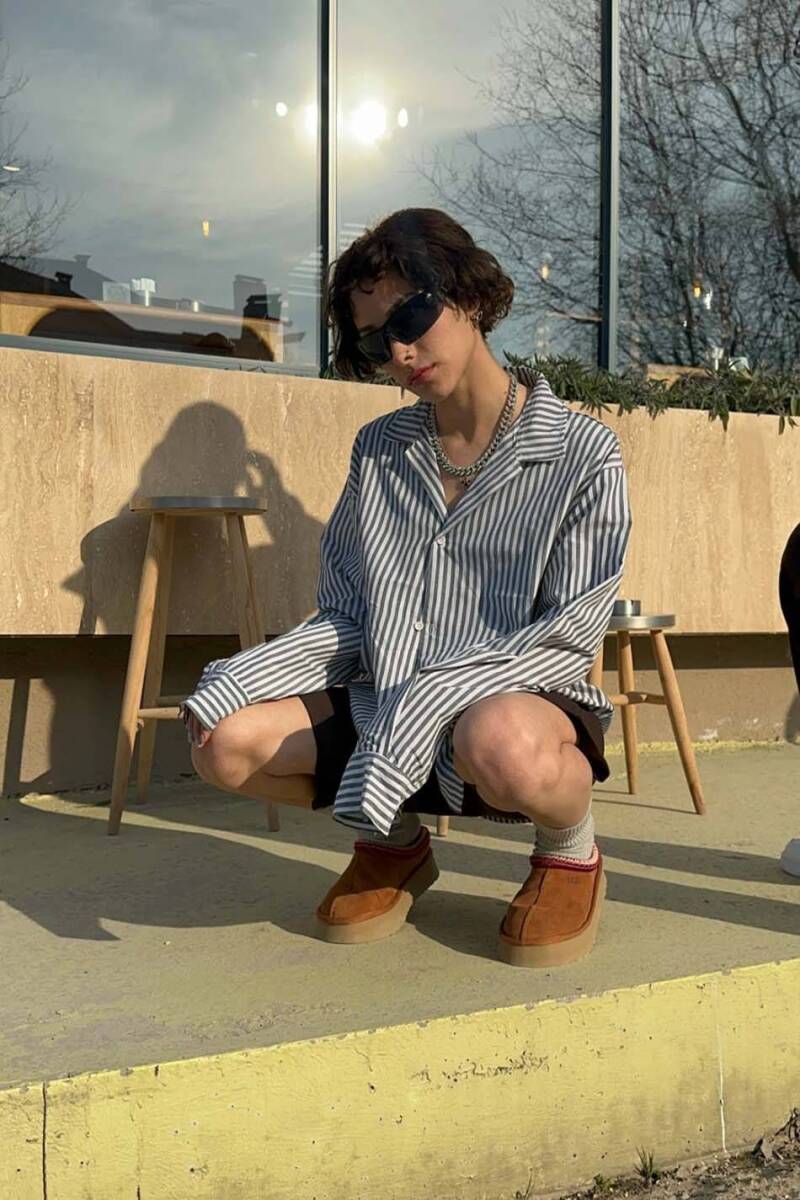 Yeşil çizgili boxy fit crop gömlek. Pamuklu kumaşşan üretilmiş, dikey çizgili crop gömlek. Düğmeli manşetleri ve önden tam düğme kapamalı tasarımıyla klasik bir silüete sahiptir. Etek ucu düz olup, bol kesimi sayesinde rahat bir kullanım sunar.