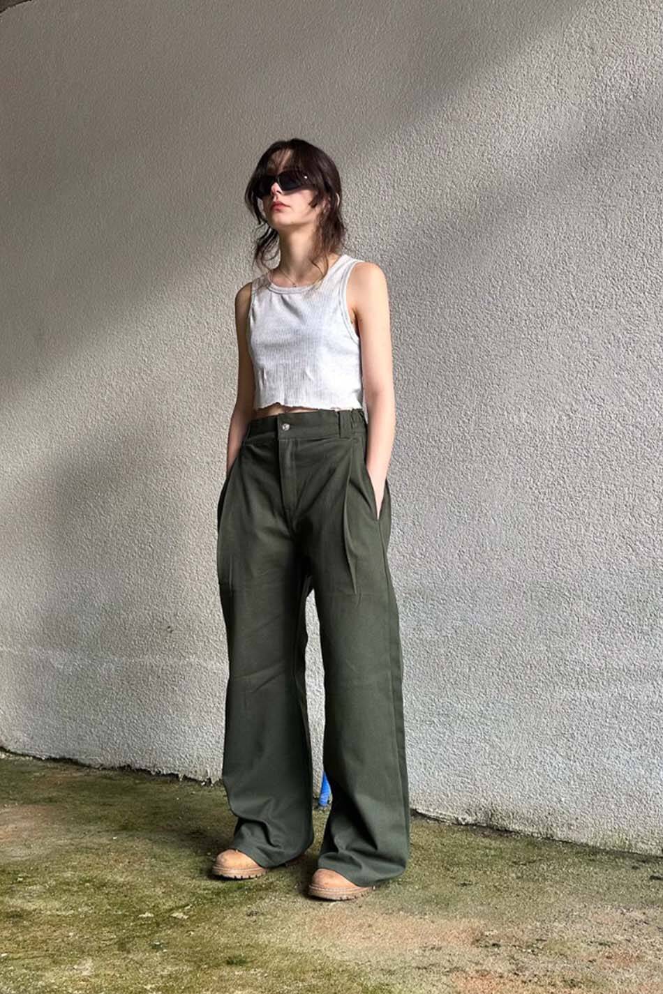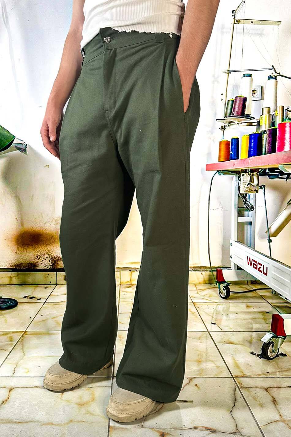 390gsm ağırlığında %100 pamuk gabardin kumaştan üretilmiştir. Yanlarda bulunan lastik detay ve kemer halkaları, farklı bedenler için konforlu ve dengeli bir uyum sağlar. Belin bol ya da sık olma sorununu kaldırır. Yan kısımdaki çift pile yapısı modern ve klasik görünümü bir araya getirir. Paça kısmındaki şerit detayı arka paçanın yere değmesini önler ve daha düzenli bir duruş sunar. Belin iki tarafında 10 cm lastik bulunur, büyük bedenlerde dahi bel kavramasını destekler.